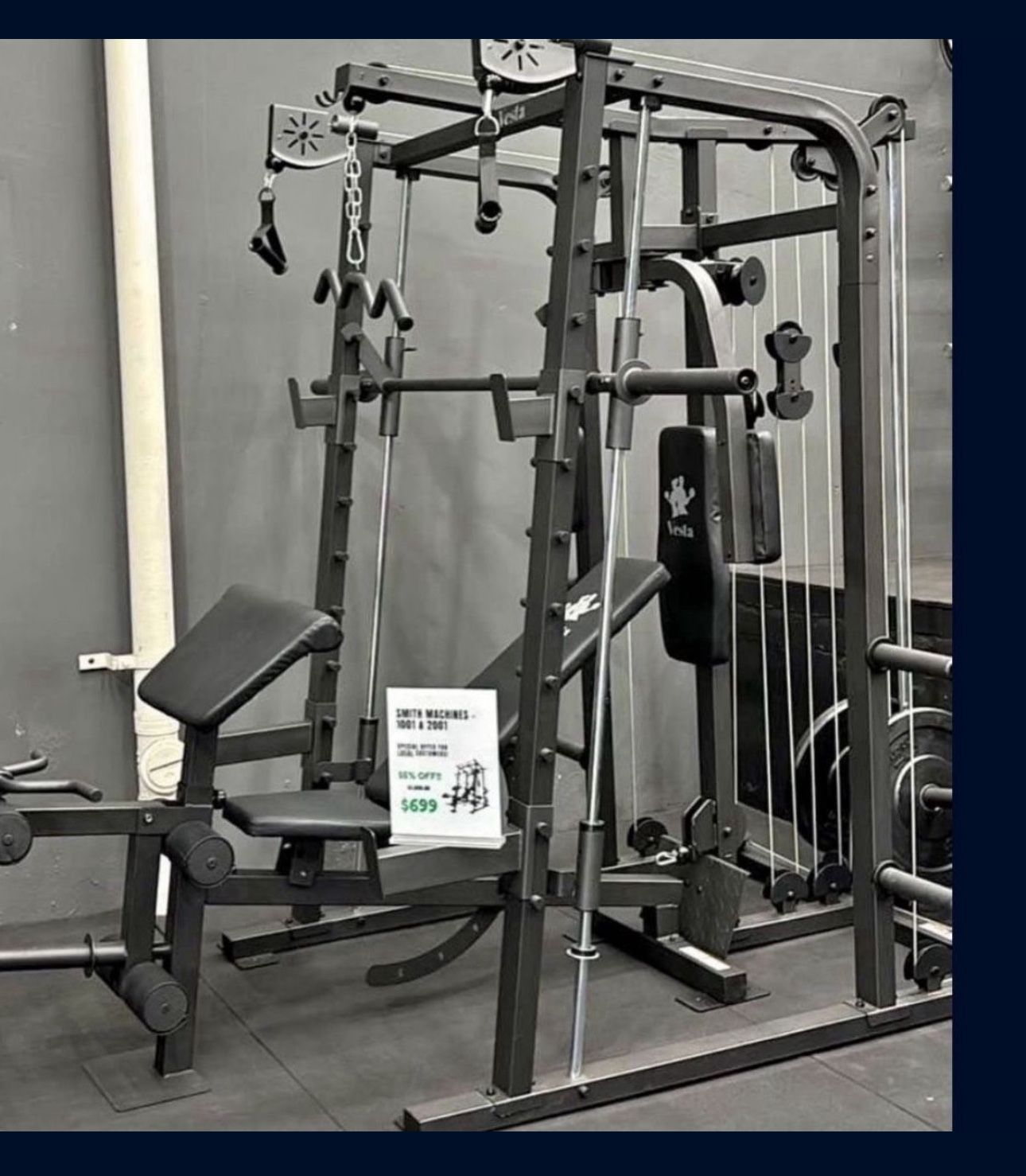 The Vesta Multi-function Smith Machine SM-2001 is equipped with different strength machines and exercise station to bring the full gym experience to your home gym. It is designed to have a variety of exercises within one compact design. Let us help your create your home gym!! New in box! Click our profile for more gym equipment listings! Credit Cards / Cash / Venmo / Zelle / Financing Available! Visit our showroom to view all of our all of our other products in person! Open 7 days a week!