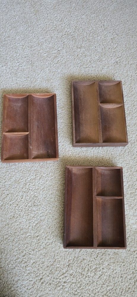 1960s Danish Teak Wood Vide Poche Desk or Vanity Trays, 3 pieces
