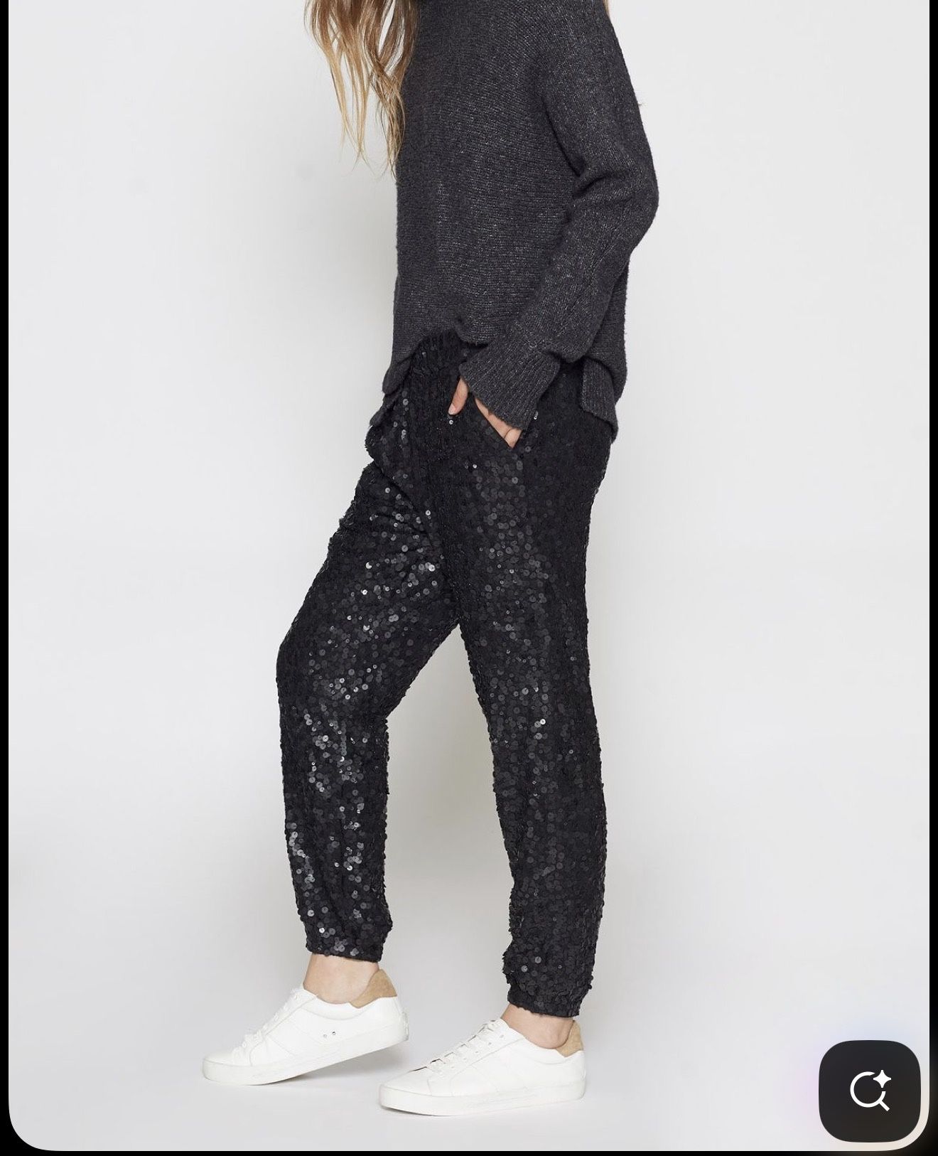 JOIE Aife Sequined Jogger Pants in Caviar Black