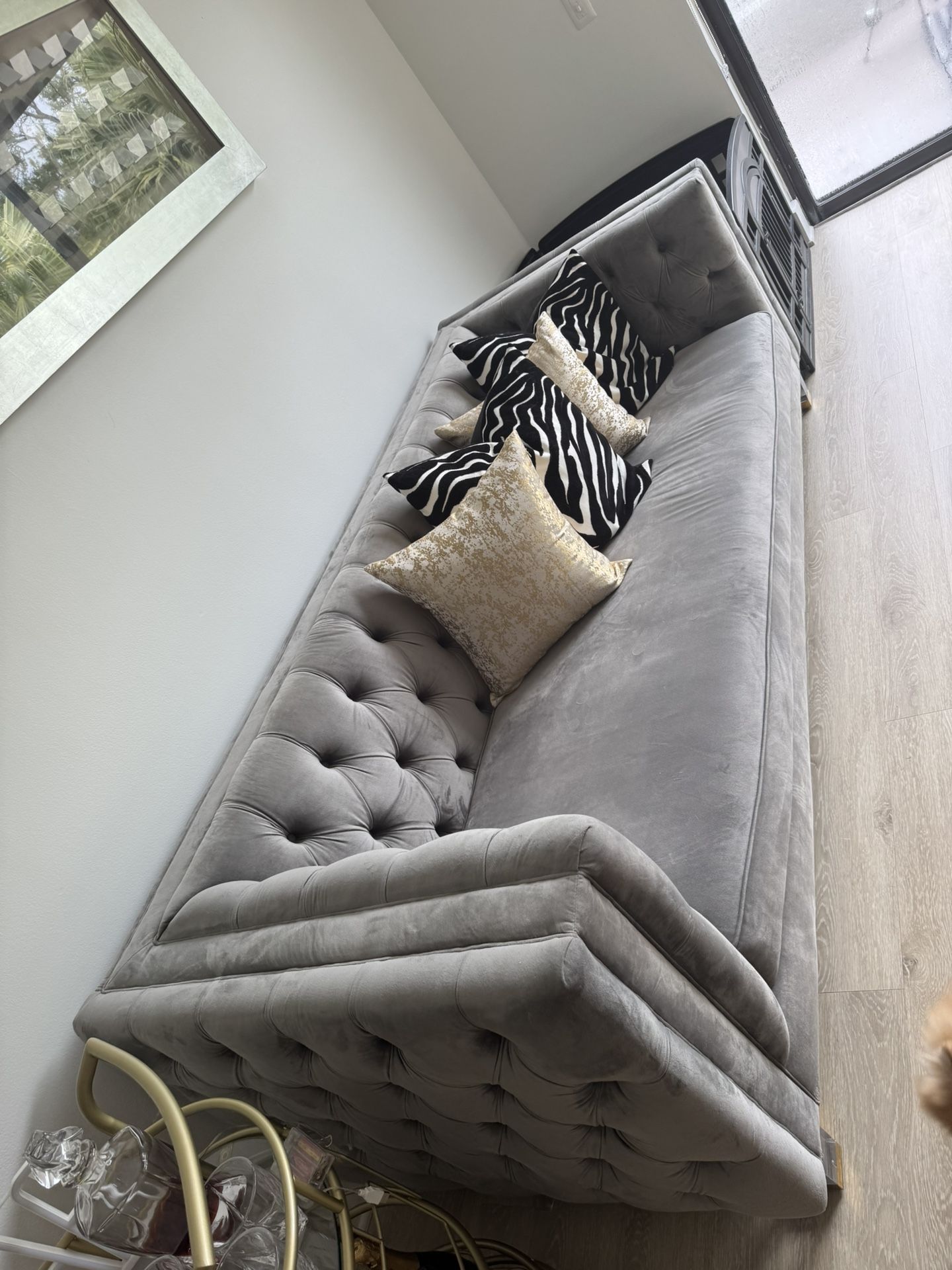 Grey Sofa 90” Velvet Material