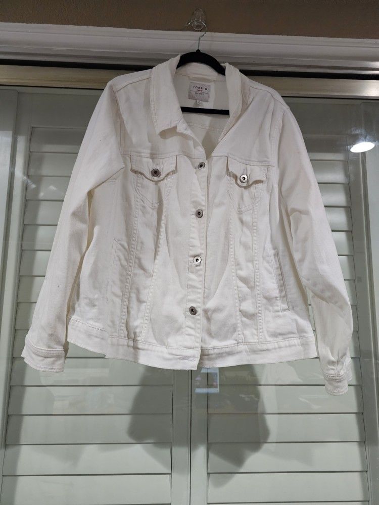 Please Read Before You Message Me *White Jean Jacket From Torrid! In excellent condition; no rips or tears are detected. I have two items available: one size 1X! $13 plus shipping. Please let me know if you require a separate listing. * non-smoking Pet free home *Price is firm. Any less will be ignored! *Please Dont come and make another offer. I will not accept. Only what i what i ask for. *Please do not waste my time saying that you're going to pick it up, but you do not show up. Please Let Me Know! I am okay with changing the day long, so you let me know. Don't keep me waiting! Dont like Fakers. I hate waiting for people dont show up! You are wasting my time. It takes time to look for the item. Dont ask for my address until you are on your way. My location said my page. Please be polite! Thank you! *Price Firm *Pick Up Only *No Delivery *Final Sale *No Trade *Serious buyers! *No Fake Ones. I will block you if you don't show up! *I do shipping! I always ship the next day purchased