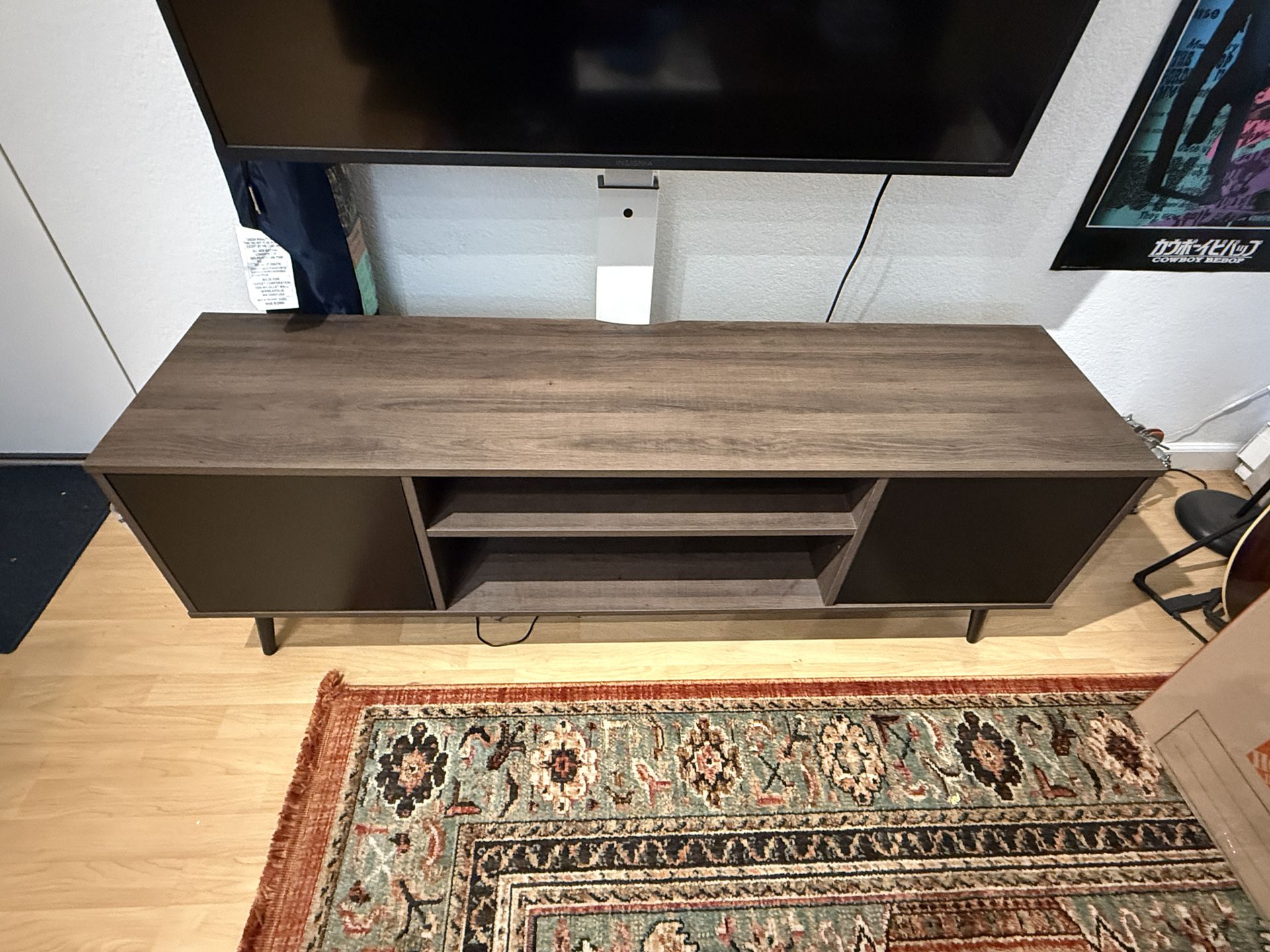 Tv stand with 2 shelves and 2 box cabinets No scratches or dents Pick up only