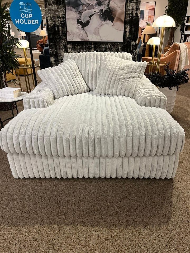 Features: The Stupendous oversized chaise pairs bold character with sink-in comfort. Its retro-cool jumbo cord over feather-blend cushions creates a luxuriously soft lounging experience. Cup holders and USB charging help to keep essentials close. With this chaise, you can balance everyday relaxation and your unique eye for design. Corner-blocked frame Loose reversible seat and back cushions High-resiliency foam cushion wrapped in feather-fiber blend jacket Throw pillows included Pillows with feather-fiber blend Polyester upholstery Non-skid legs USB charging port Power cord included; UL Listed 2 cup holders Platform foundation system resists sagging 3x better than spring system after 20,000 testing cycles by providing more even support Smooth platform foundation maintains tight, wrinkle-free look without dips or sags that can occur over time with sinuous spring foundations Dimensions: Width: 64.00" Height: 41.00" Depth: 68.00" Original Price: $1599.00 Sale Price: $995.00 We offer various finance plans $39 down same as cash with no interest for 90 & 100 days. Longer financing plans are also available. Lowest prices, great quality products and exceptional service guaranteed. We also have a wide range of other living room, bedroom and dining room products to choose from a highly affordable price. For buying visit Splendid Furnishings located at 4073 Lavista Road, Suite 311, Tucker GA 30084 or call 470-269-9301.