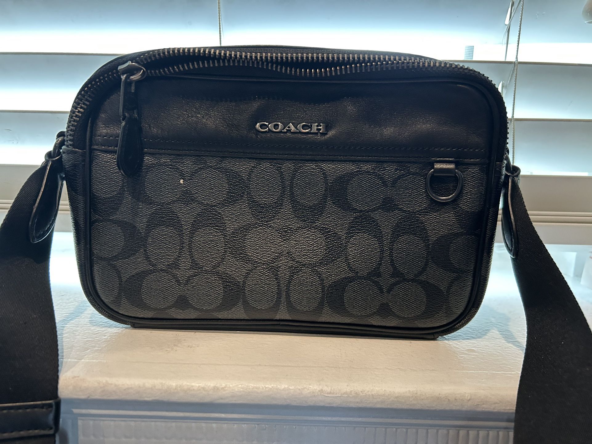 Simple male or female handbag with shoulder strap. Use but still clean for the look