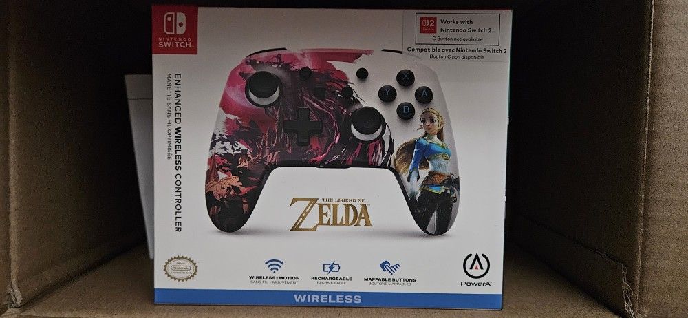Brand new/factory sealed, never opened. PowerA enhanced wireless controller for Nintendo Switch. This Zelda Blood Moon edition controller has wireless and motion controls. Rechargeable battery gives up to 30+ hours per charge. Also has mappable buttons and ergonomic design. Works with Nintendo Switch 1/2, Switch OLED, and Switch Lite.