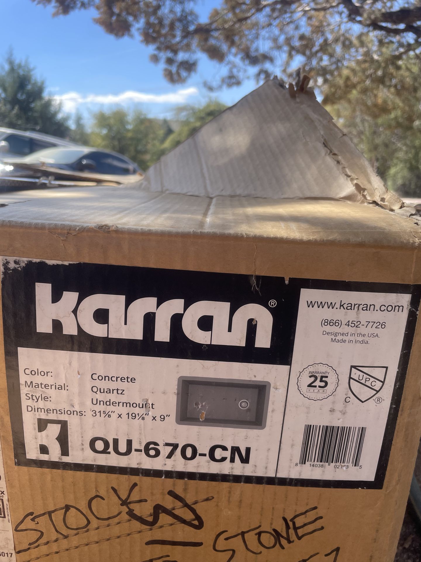 Concrete color, quartz material, dimensions 31.25" x 19.25" x 9". 200$ OBO