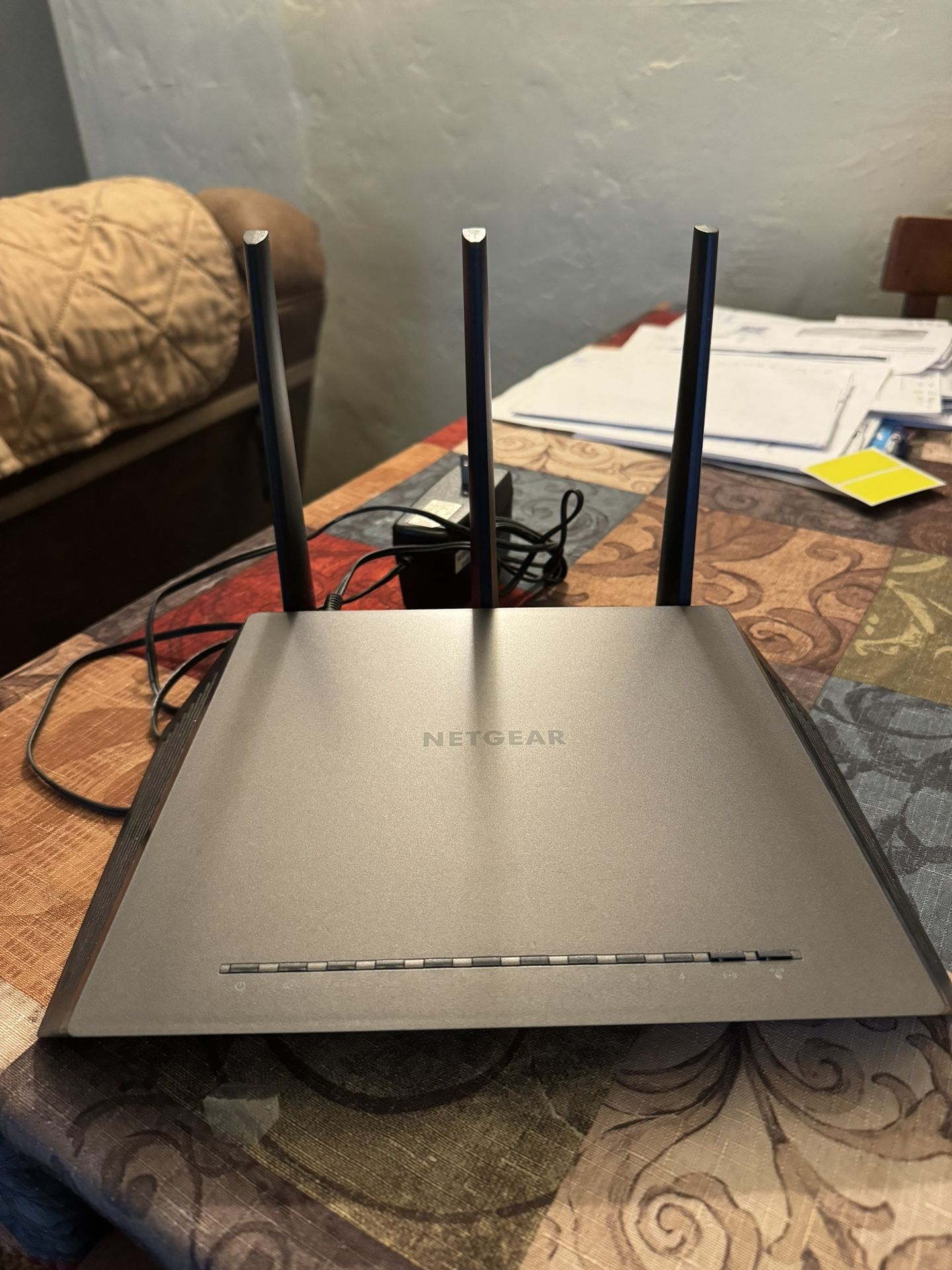 Pretty much new NETGEAR Nighthawk Smart Wi-Fi Router (R7000) - AC1900 Wireless Speed (Up to 1900 Mbps) | Up to 1800 Sq Ft Coverage & 30 Devices | 4 x 1G Ethernet and 2 USB ports for sale. Bought to use with fiber internet and was told not to use it.