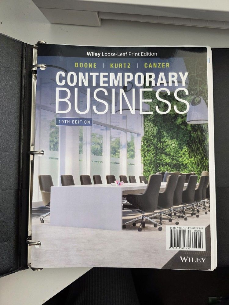 Contemporary Business 19th Edition, loose leaf; it's practically brand new; no writings, markings, or highlights; it's in a 3 ring binder
