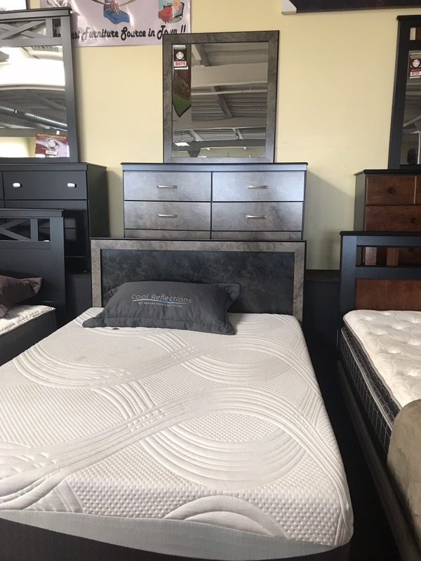 Brand new !!! JUST $550 for the -headboard /bed frame -dresser /mirror -mattress and box spring FREE DELIVERY 📦 WARRANTY INCLUDED AVAILABLE IN FULL OR QUEEN ONLY Upgrade to a pillow top mattress for just $50