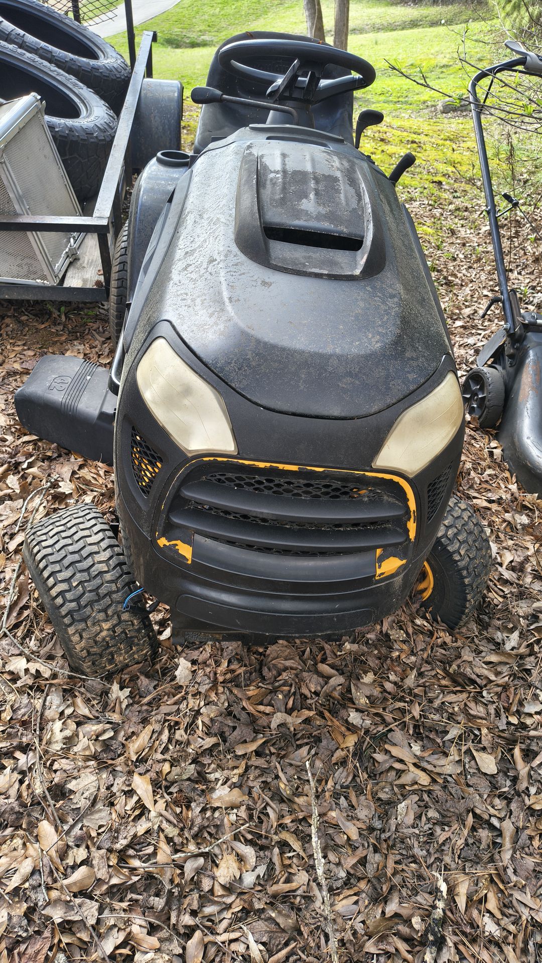 This is a Poulan mower. I was told this mower needs a spindle and will need another battery because it's been sitting for a while. This is why I'm selling it very cheap. Will accept reasonable offers..thanks for looking!