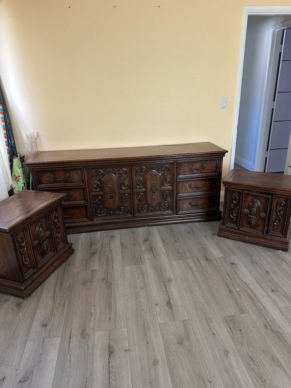 The big chest cabinet size 75 inch length Width 20 inch Height 30inch. The small night stand 24 inch length 16inch width