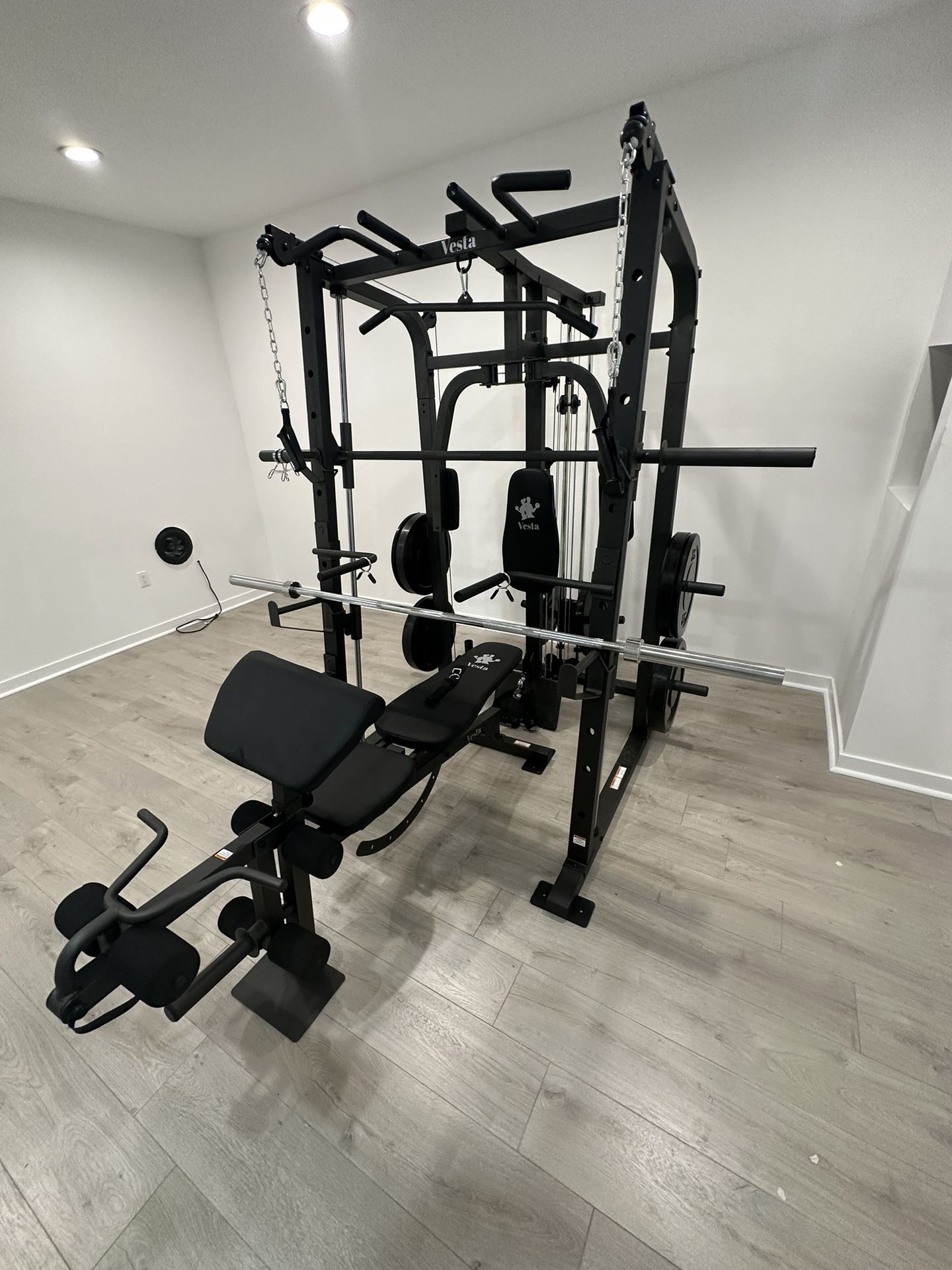 Vesta Fitness Smith Machine 1001 w/Bench Attachment | 230lb Bumpers Olympic Weights | 7ft Olympic Bar | Gym Equipment | FREE DELIVERY/INSTALLđźšš