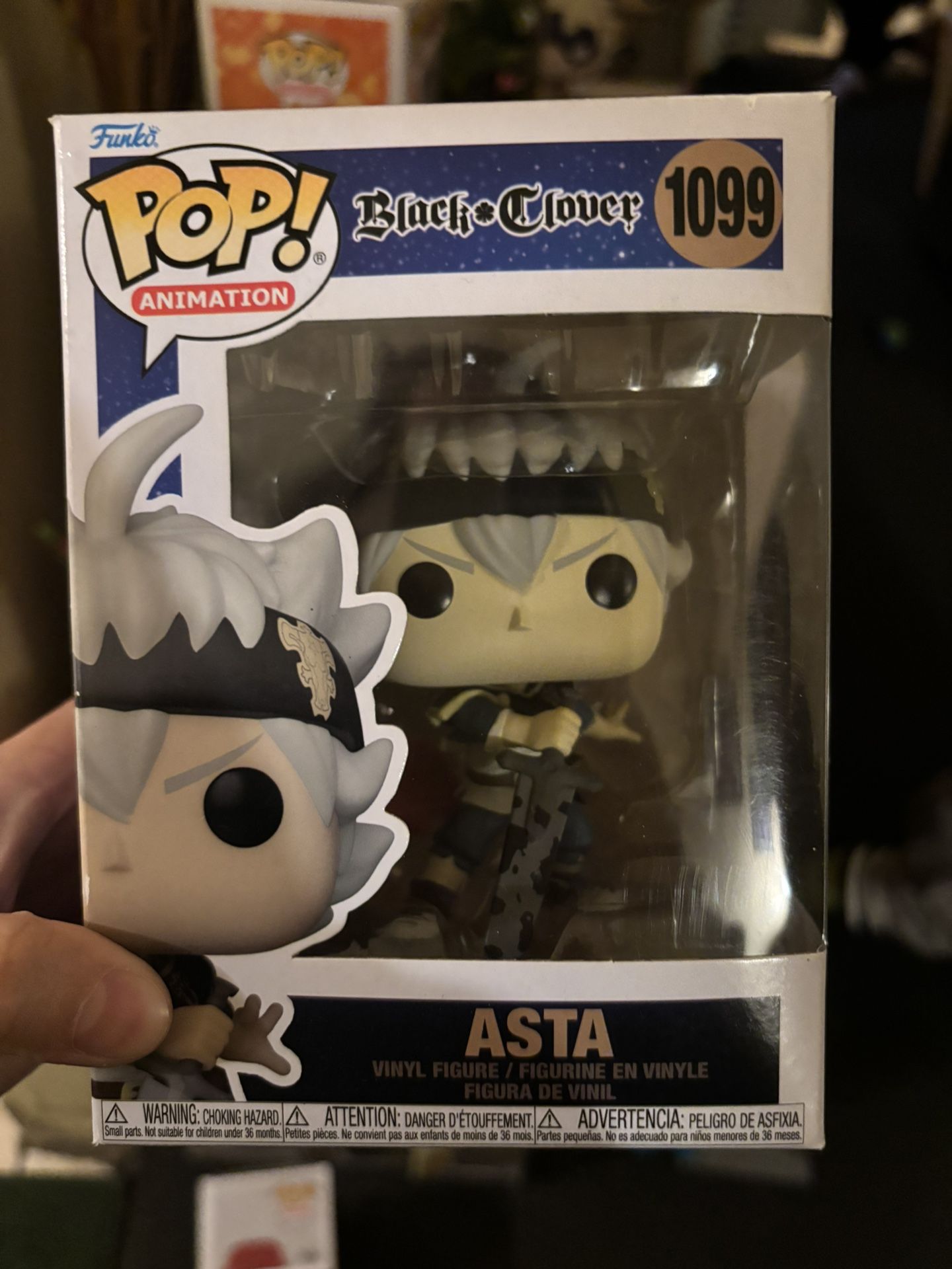 This item is a Funko Pop! Animation: Black Clover - Asta #1099 vinyl figure. Character: Asta from the anime series Black Clover. Dimensions: Approximately 3.75 inches tall. Material: Vinyl. Collector Information: This is part of the Funko Pop! Animation line.