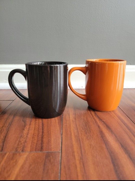 Royal Norfolk mugs - set of 2 Halloween themed - one orange, one black 12 oz. 4"H x 3"W