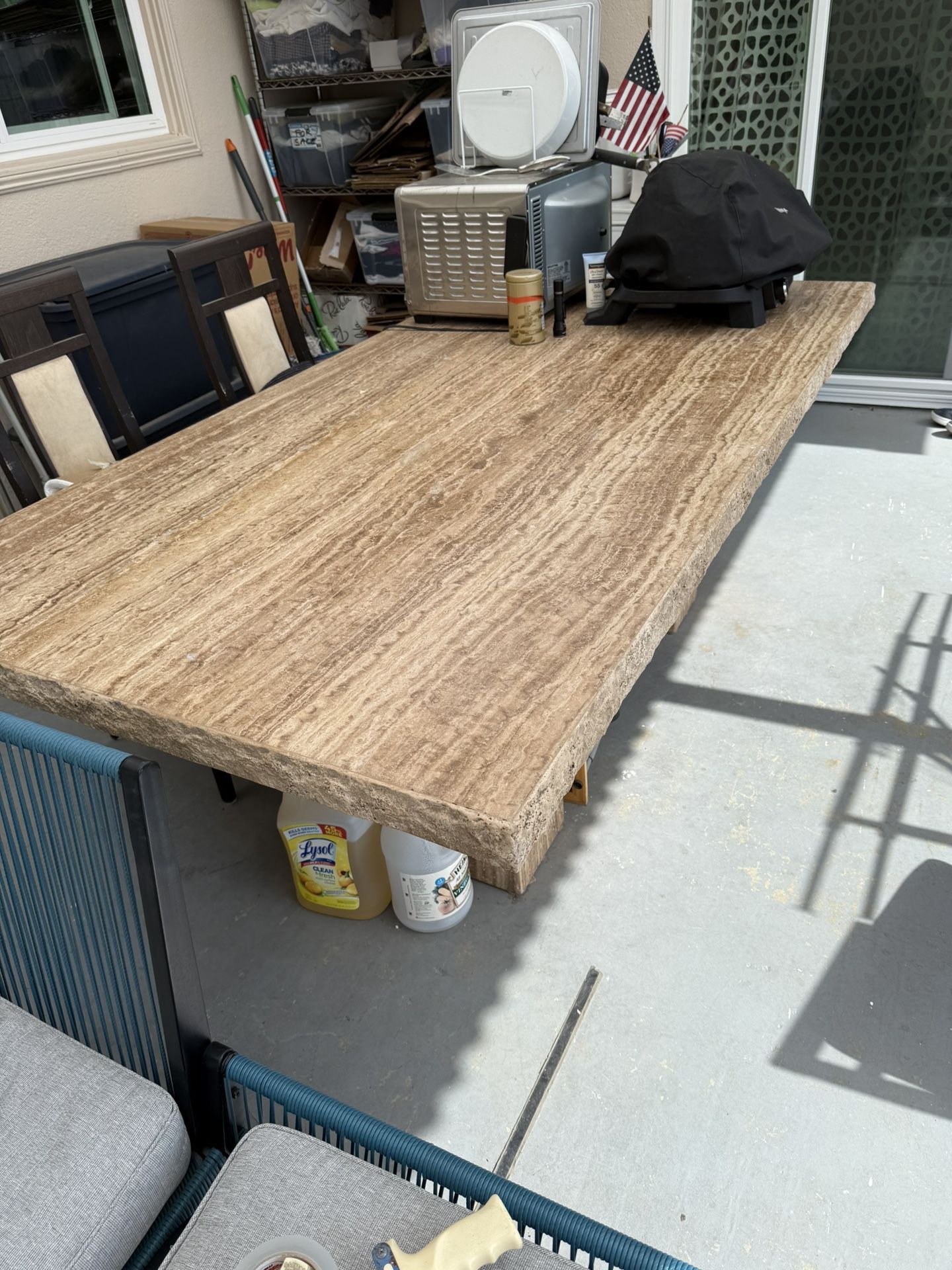 Granite top dinning table ; 82”Lx 43”Wx 31” H 8 wood framed upholstery chairs; 41”Hx18”Wx17”D Selling the whole set for one pricing