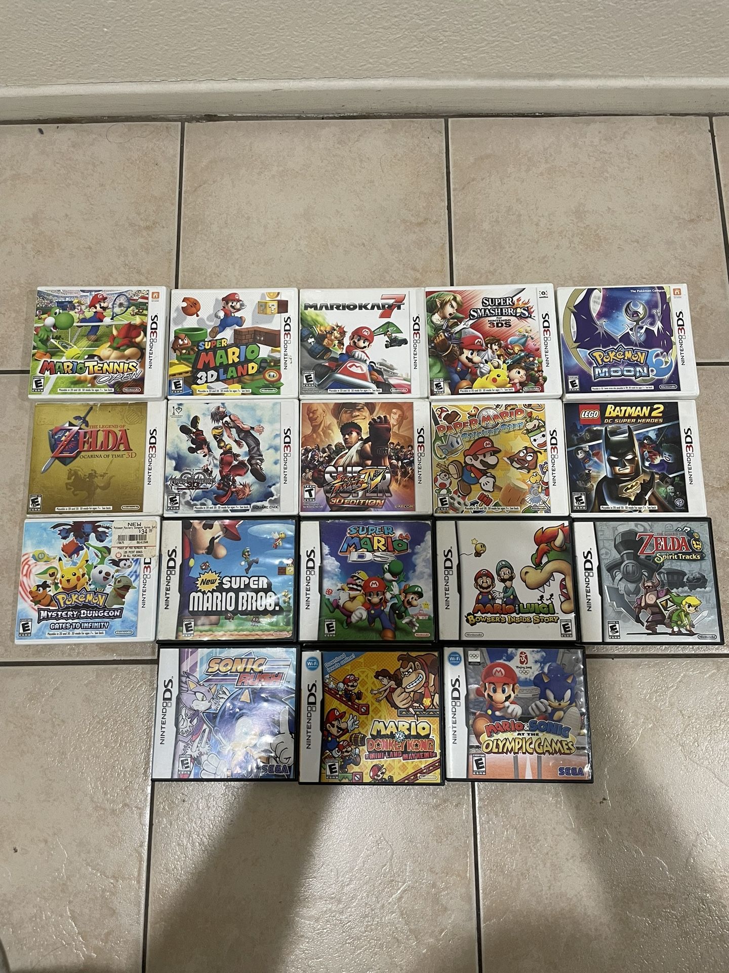 $10 each or 2 for $15 Empty cases NO GAMES Super Mario Pokémon Smash bros Zelda Kingdom hearts Sonic Batman Mario kart 7 Mario tennis