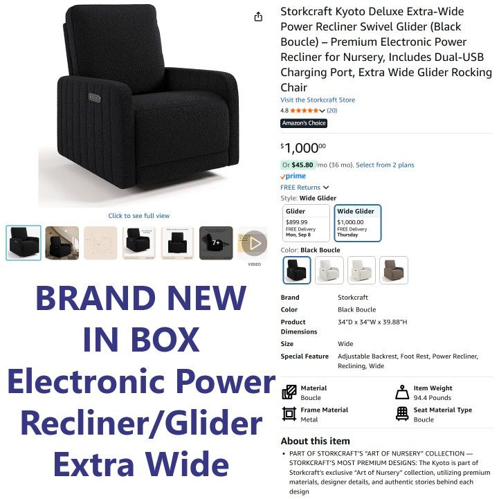 Storkcraft Electronic Power Glider / Recliner Extra Wide