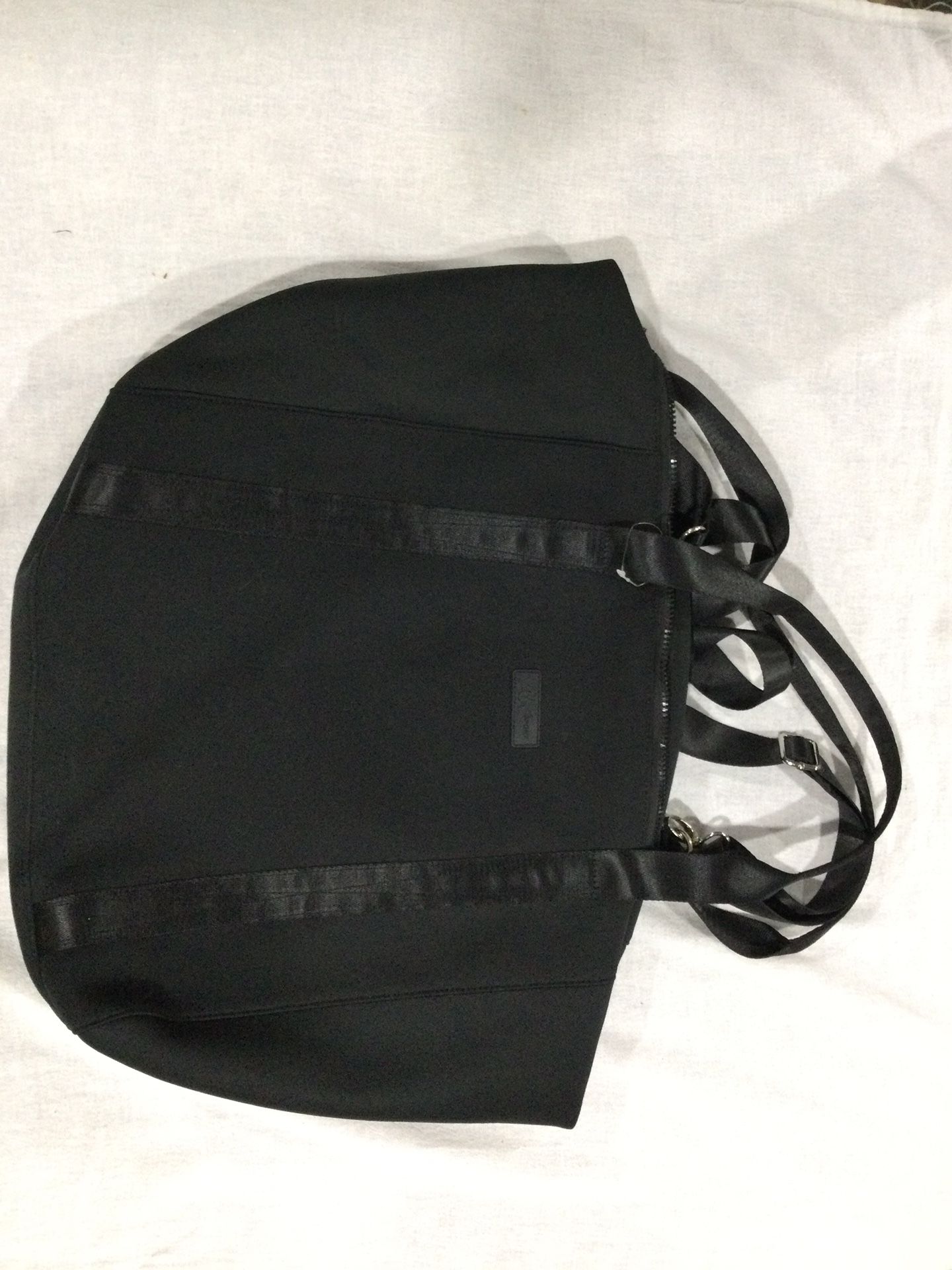 Black spandex tote 15 1/2 inches long 14 1/2 inches deep 4 1/2 inches wide
