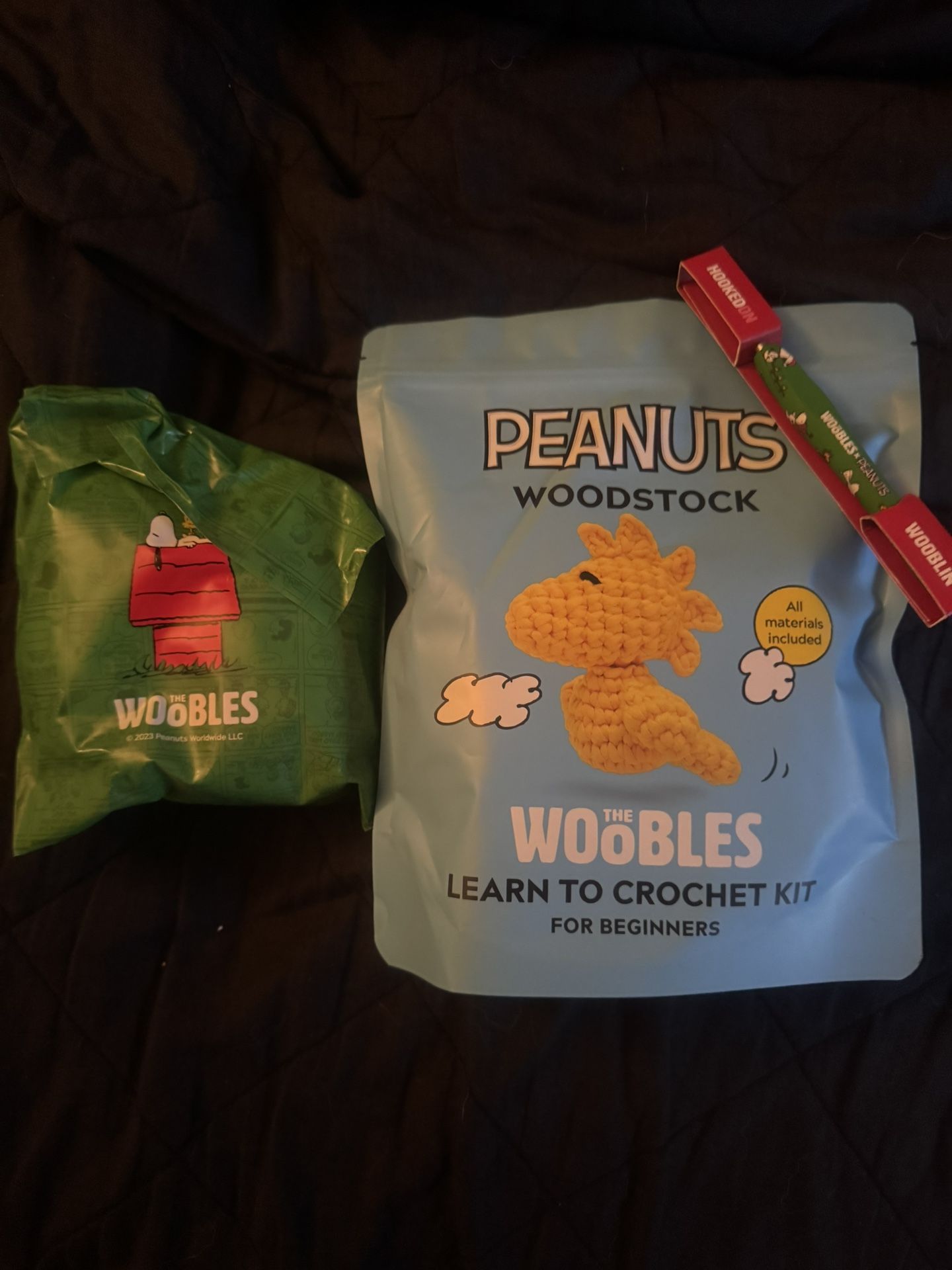 Learn to crochet Woobles kit. Woodstock, Woodstock’s winter outfit, And Peanuts , crochet hook.