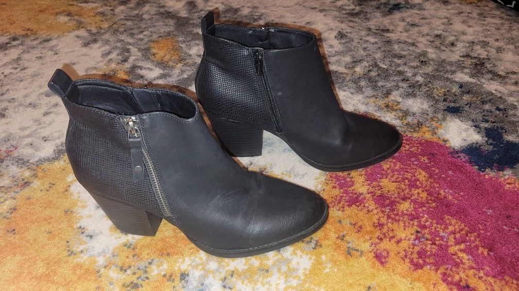 Size 9.5 womens super cute black leather boots with 1-1.5 heels. They've never been worn and are just too small for me. Don't remember what I originally paid for them, but I'm asking $20 OBO!
