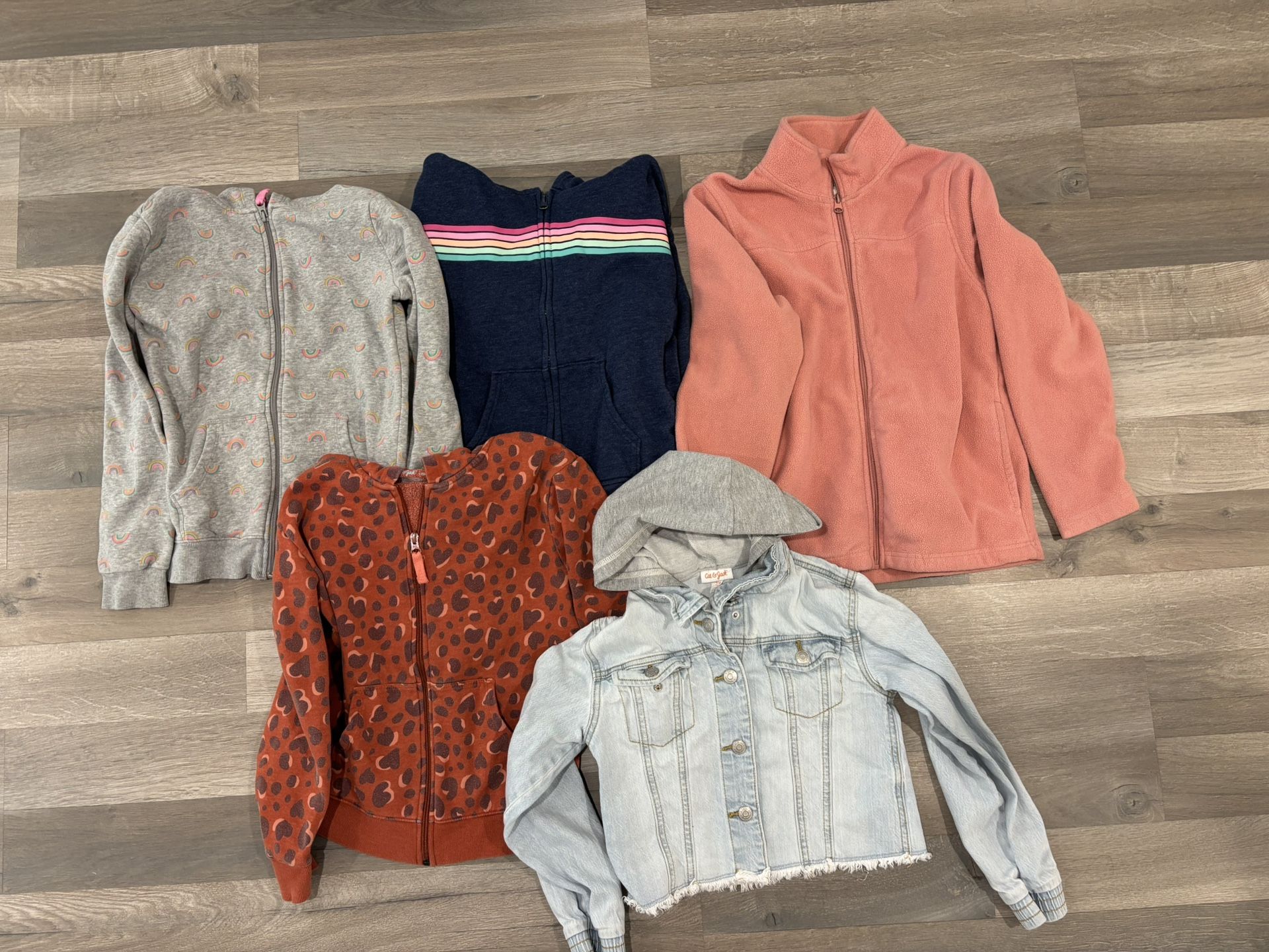 Sweater 3 hoodie 1 warm 1 Jean jacket Large 10-12 and the blue one is Xl $10 for all