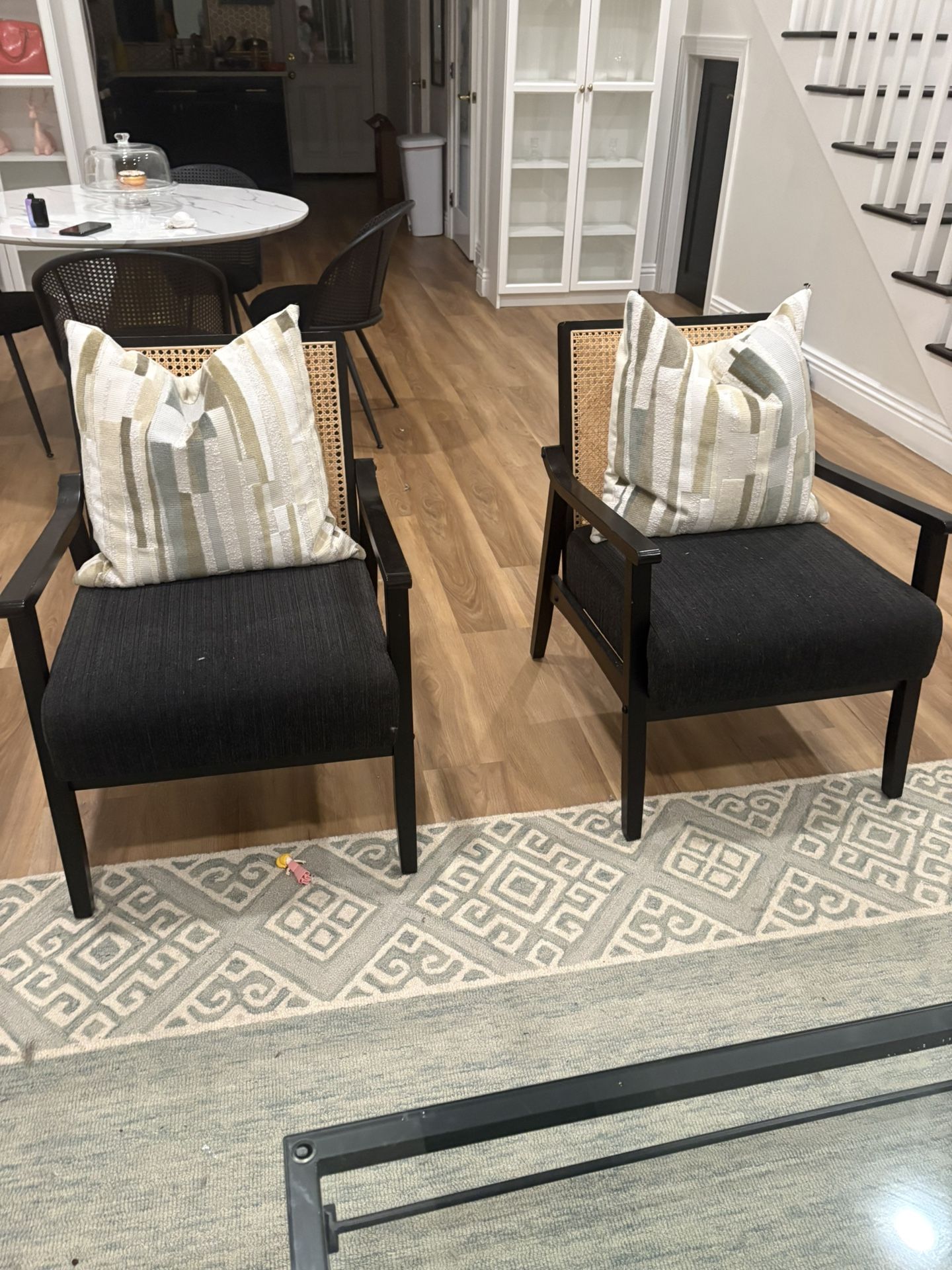 Two black side chairs with bamboo back just used to stay in the house