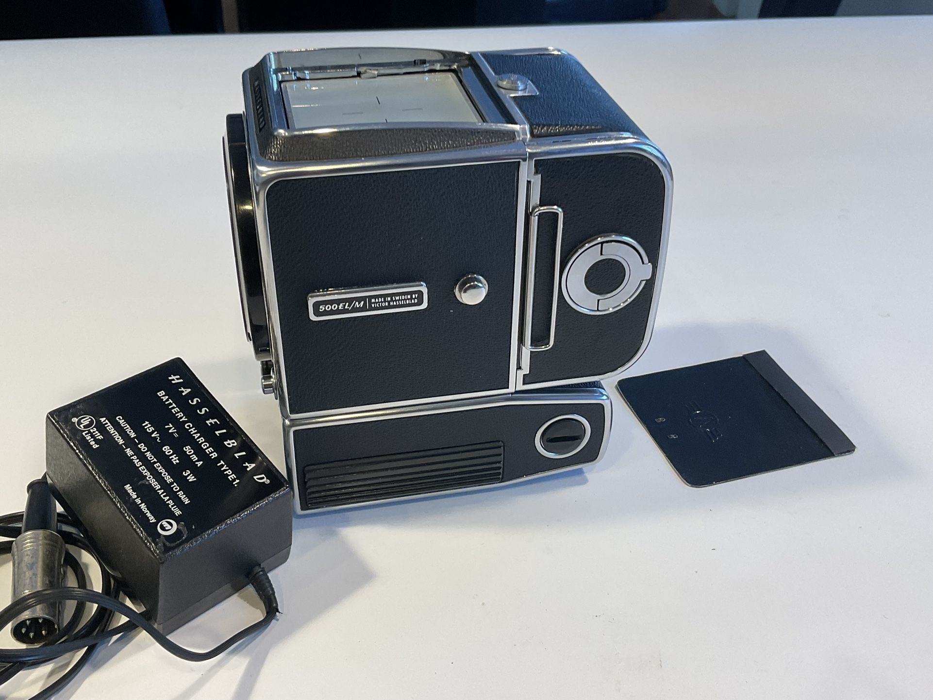Hasselblad ELM500 chrome in very excellent condition. $ 370 body includes - Focusing screen - Focusing screen cover, body Cap/cove r - 9V battery adapter - original varta battery and charger Release cables long and short version $ 75 Hasselblad 55mm Extension Macro Lens Tube Adapter $ 50 (21 Extension not included) Make an offer!