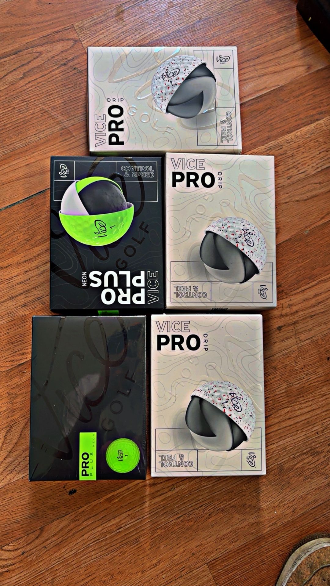 5 Box's Of top-of-the-line golf balls, vice pro plus and vice pro drip