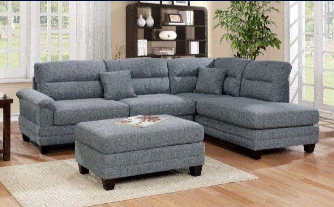 We are an online wholesaler and we deliver directly from the manufacturer to your home Delivery is only $40 Brand new in the boxes Assembly is an extra charge We accept cash on delivery Item#: F6585 A fitting furniture for anyone who loves simplicity, this classic American sofa brings a touch of contemporary design for your home. This three pieces sectional sofa offers spacious seatings for you to have quality time together with your family and friends, and the matching color cocktail ottoman and two pillows establish a more complete look. With a reversible chaise functionality, this simple yet unique sofa provides versatility for you to arrange it to the way you prefer. Reversible L/R Chaise: 75" x 34" x 35"H ; Sofa: 70" x 34" x 35"H ; Ottoman: 35" x 25" x 19"H