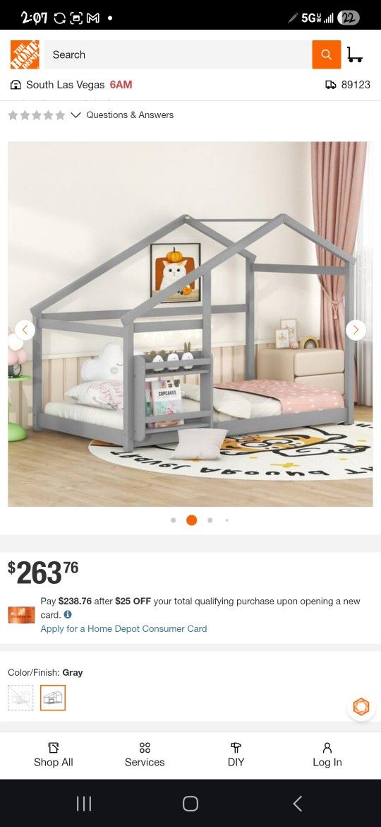 The twin size house floor bed is designed with an adorable house shape The wood montessori bed with shelf offers storage space for books and toys, Maximize space and help to develop your child's habit of storage, It's a perfect space-saving solution made of sturdy and high-quality pinewood and plywood that can enhance stability and durability as well as ensure a long lifespan. Slats are included and do not require a box spring. Mattress NOT included. The twin bed accommodates a standard twin-size mattress, over 4- 6 in. in thickness Overall dimension:81.69 in. x 45.39 in. x 57.32 in. H Recommended mattress thickness:4-6 in. mattress not included Weight capacity: 250 lbs. Product material: pine wood plus plywood Box spring required: no