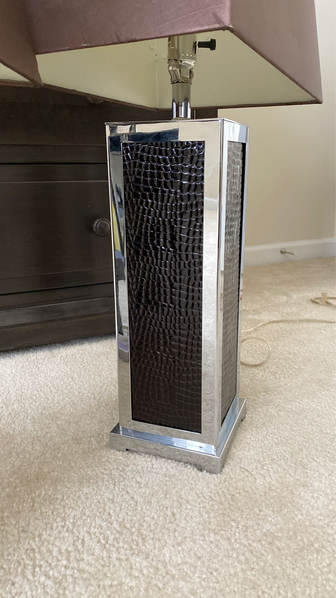 Two brown gator print lamps with mirror sides. Shades are included but replaceable. Lamps are in overall solid condition. Must pick up and price is for both.