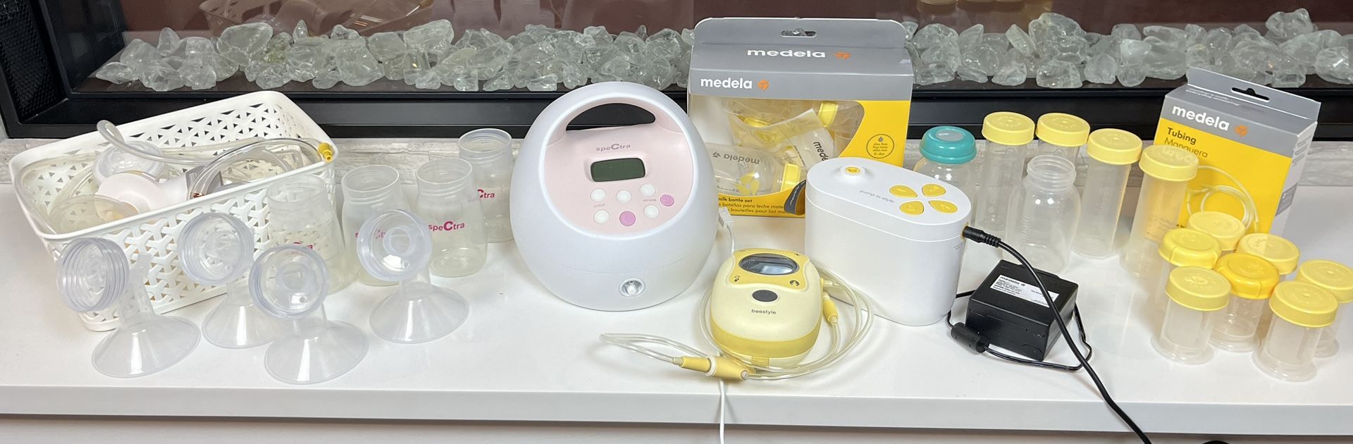 Used but in working condition. Extra tubing, storage bottles and bottle set for Medela. Battery for portable use of the Medela pump. Chargers, etc. First come, first served basis. $100 for everything, firm.