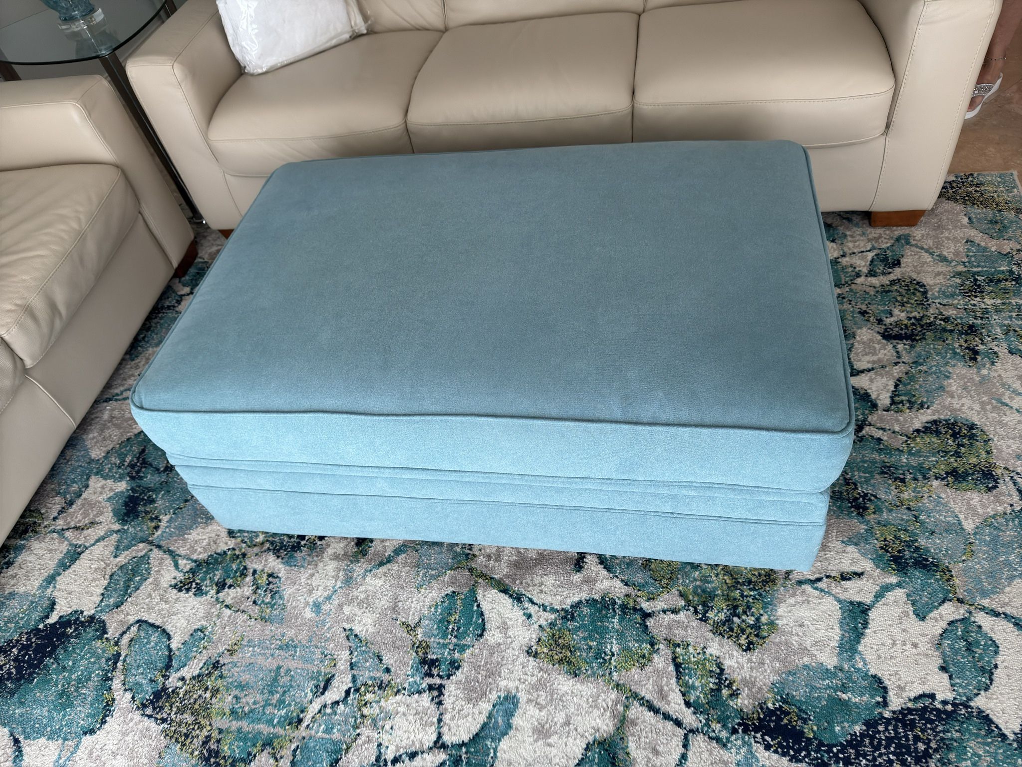 Teal Blue Pillow Coffee Table With Storage like new 48 W x 31 D x 18 H