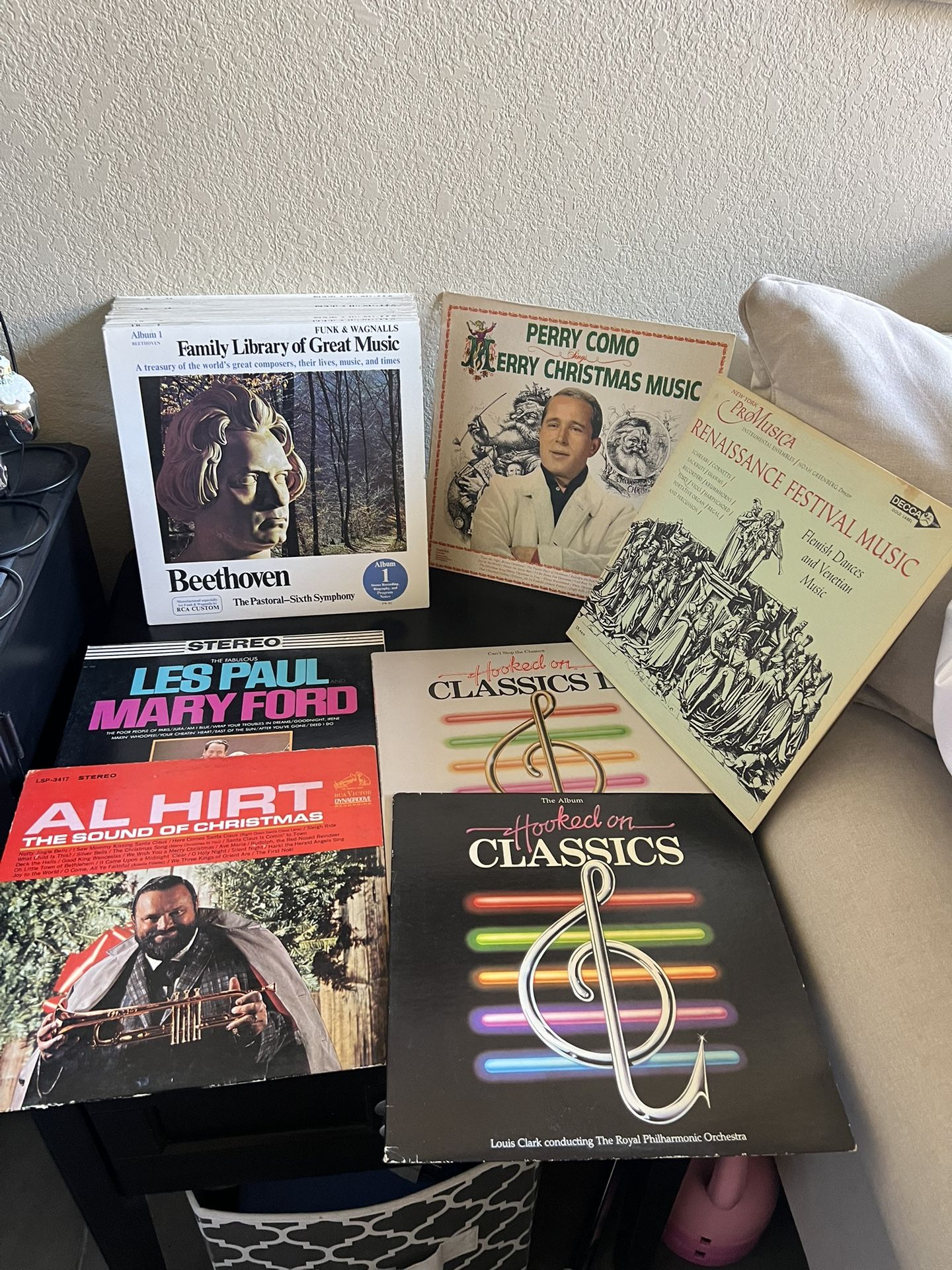 Complete 22 Record Set: Funk & Wagnalls Family Library of Great Music collection. This series, manufactured by RCA Custom between 1975 and 1979. 22 albums featuring various classical masters like Bach, Beethoven, Chopin, Liszt, Mozart, Rachmaninoff, and Schubert. Perry Como - Merry Christmas Music Renaissance Festival Music Al Hirt - The Sound of Christmas Les Paul and Marty Ford Hooked on Classics I and II