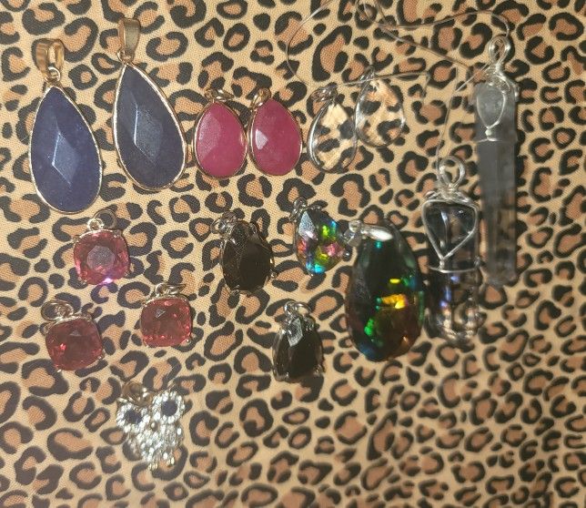 Huge Variety of different kinds of Pendant Charms. Glass Crystal, Stone Crystal, Genuine Stone and an Owl made out of Rhinestones TOP (Left - Right) 2 black- $5, 2 pink- $4, 2 clear- $4 MIDDLE (Left - Right) 3 pink -$5, 3 green- $6 BOTTOM (Left - Right) owl- $1, big green- $9, small crystal- $9, large crystal- $ 11 Or $70 for whole lot ☆☆LET ME KNOW IF YOU WANT ME TO BUNDLE ITEMS TO LOWER SHIPPING COSTS☆☆ Just send me a message from each item you want to purchase so I can make a post with all your bundled items with one low shipping cost