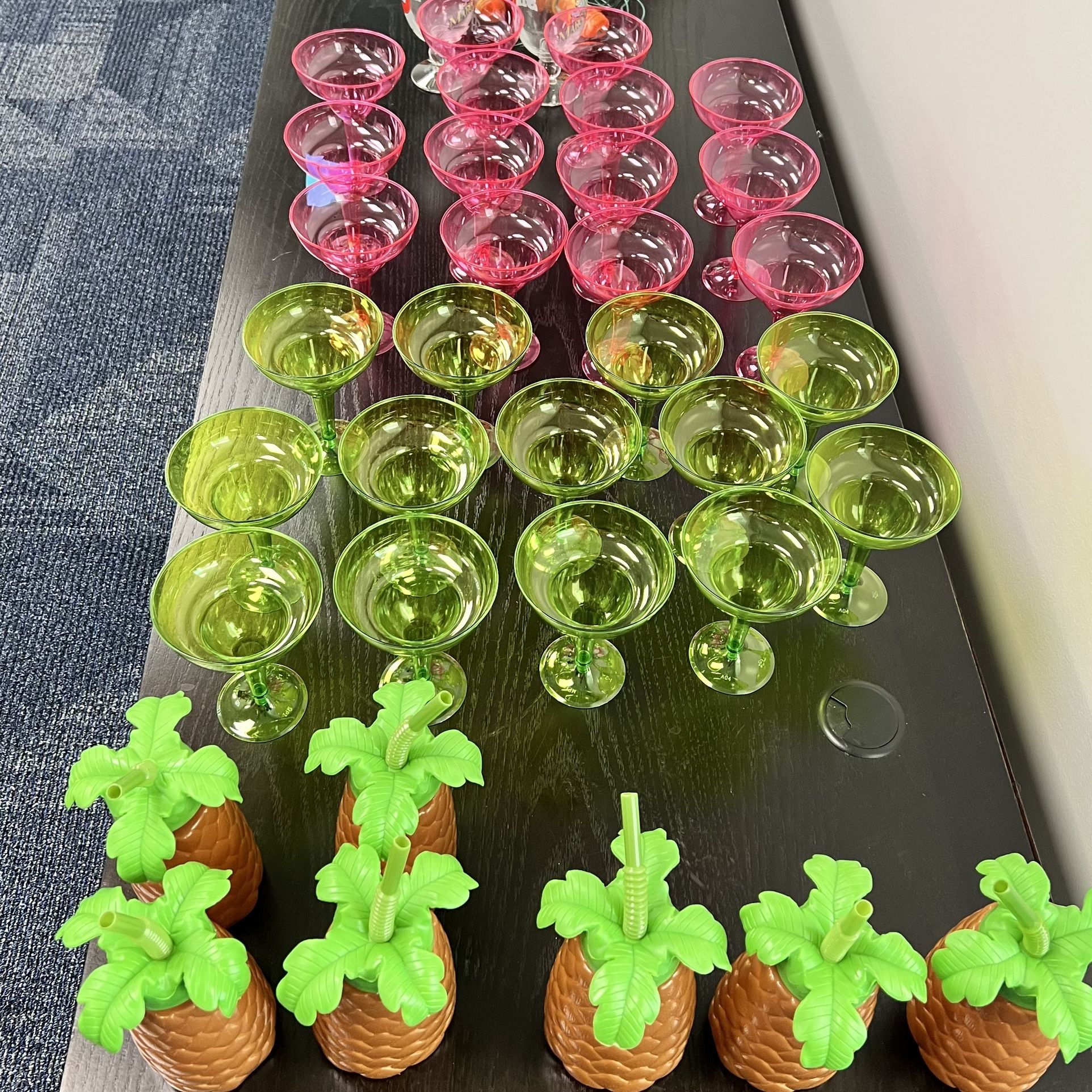 🌴 Tropical Party Drinkware Set + Tiki Lights – Fun Luau Bundle! 🌺 Bring the island vibes to your next party with this tropical drinkware set and light-up decor! Perfect for summer parties, luau themes, pool gatherings, or festive office events. Includes: • 🍹 13 green martini-style plastic glasses • 🍓 14 pink martini-style plastic glasses • 🍍 7 pineapple-shaped cups with green palm tree lids & straws • 💡 1 string of tiki face lights (works great for decoration or bar setup) Condition: Gently used / excellent condition Perfect for: Parties, events, tropical décor, bar setups, or themed celebrations. 📍Local pick up 💰Cash Only Tags: #LuauParty #TropicalDecor #MargaritaCups #PineappleCups #TikiLights #PartySupplies #SummerVibes #Barware