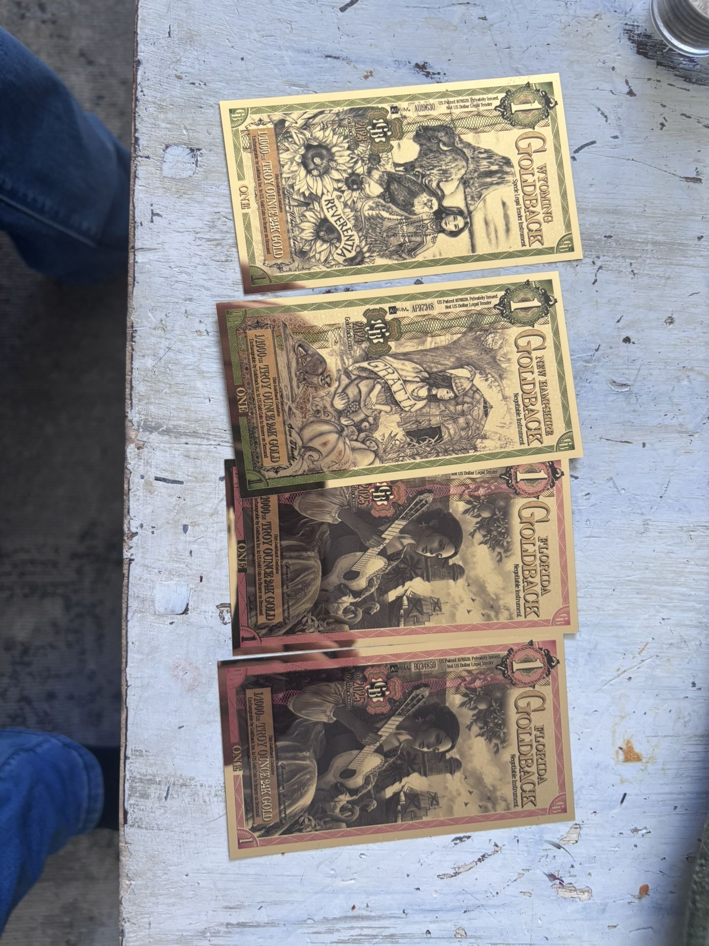 Wyoming New Hampshire and Florida gold backs