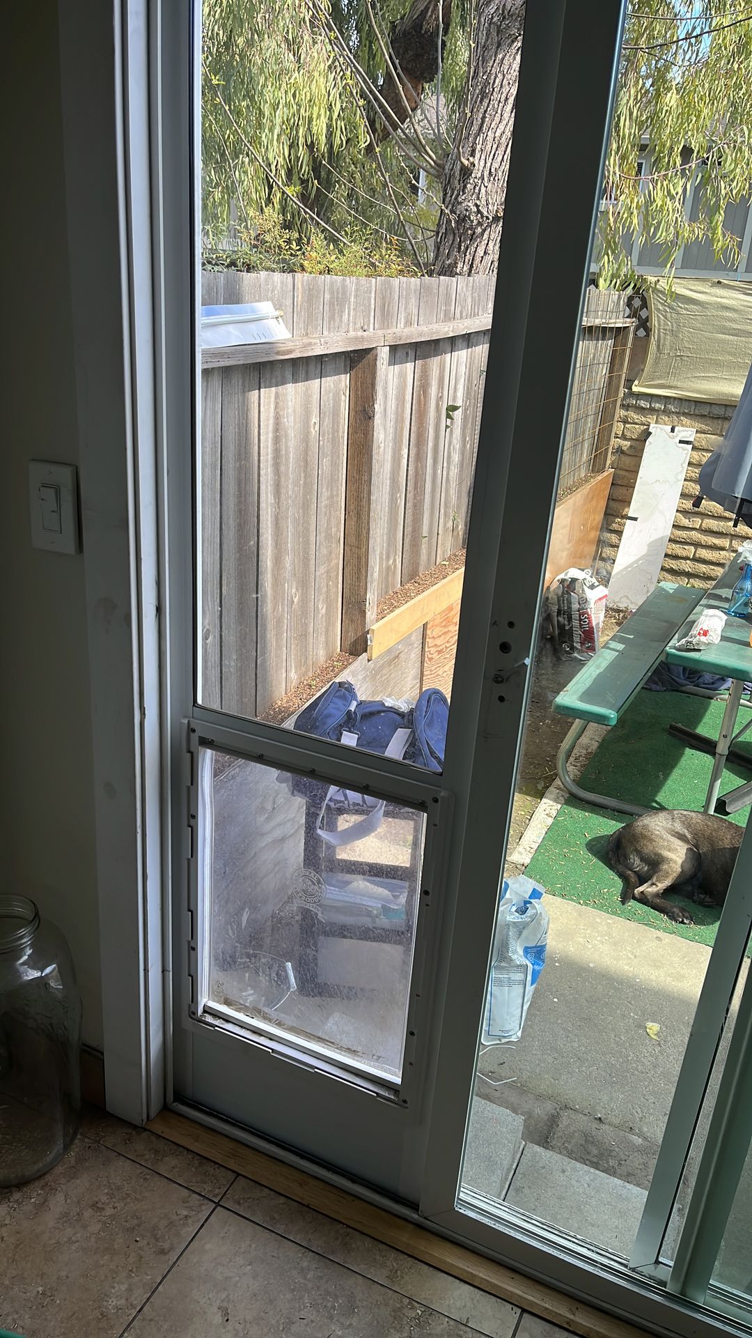 Easy to install w sliding glass door w opening for large dog 16 1/4" H x 10 1/4" W Door dimensions 78"H x 20" W