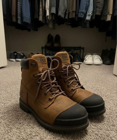 Selling my lightly used pair of men's Timberland PRO Helix HD work boots. These are built for serious jobs, featuring a composite safety toe and waterproof premium full-grain leather to keep your feet protected and dry.