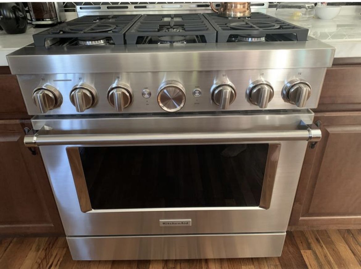 KitchenAid 36-in 6 burners 5.1-cu ft Convection Oven Freestanding Natural Gas Range ( Stainless steel ) Model #KFGC506JSS Brand new π !! Asking $$4900 Retail $6900
