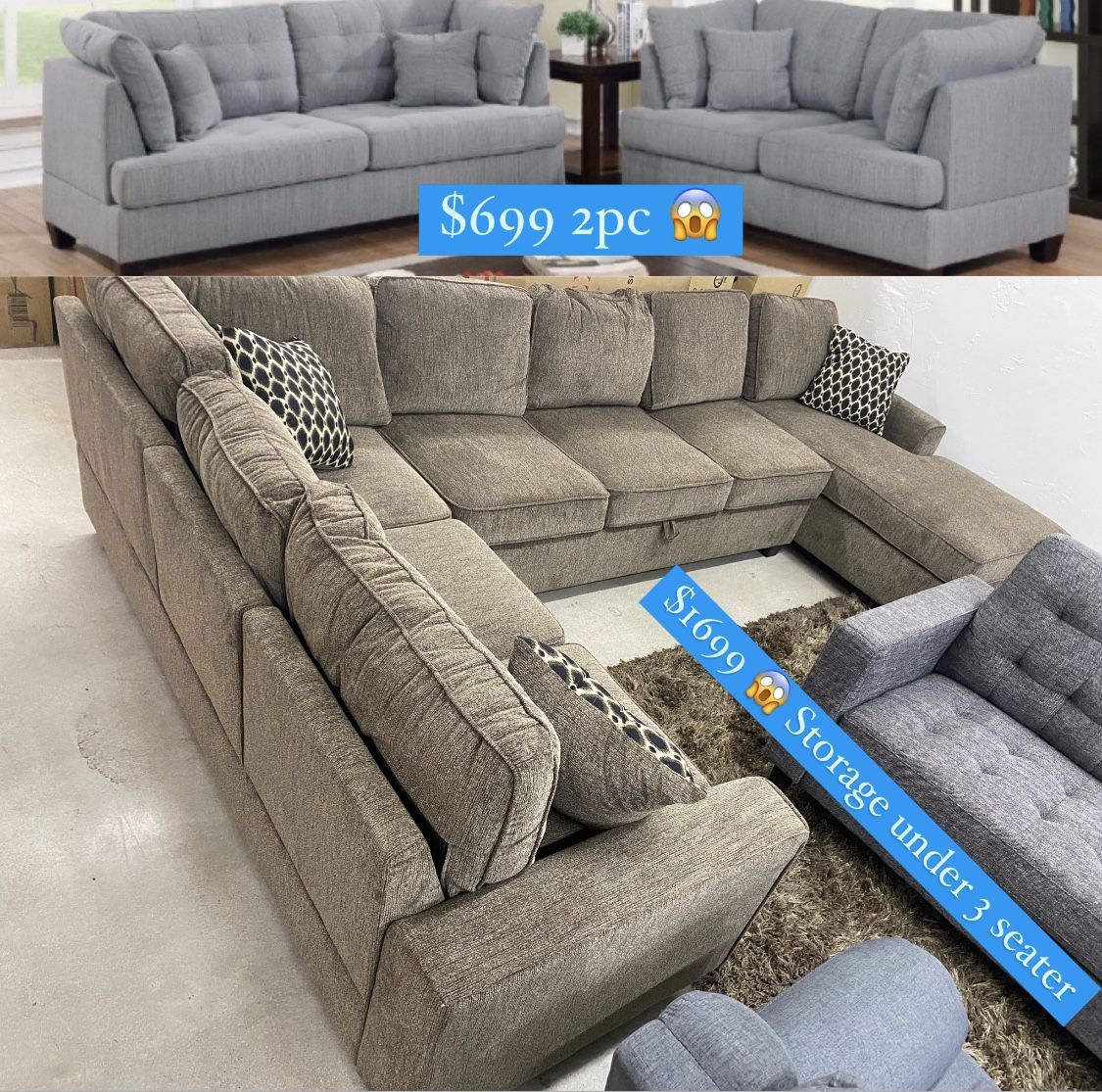 🌴NUEVOS Sofás Grandes🌴 🌴$40 o Menos de Enganche 🏷 Sofás 3 Piezas $799 !! 🏷 Sofás Sectional desde $799 !! 🏷 Sofás Reclinable con Motores desde $1749 !! 🏷 Sofás 2 Piezas desde $699!! ✅ Pagos de 100 Días- 18 Meses 🚛 Entrega Disponible 🌴3624 Buck Owens Blvd 12pm-5:30pm Lunes-Viernes) 11am-3:30 Sab/Domingo