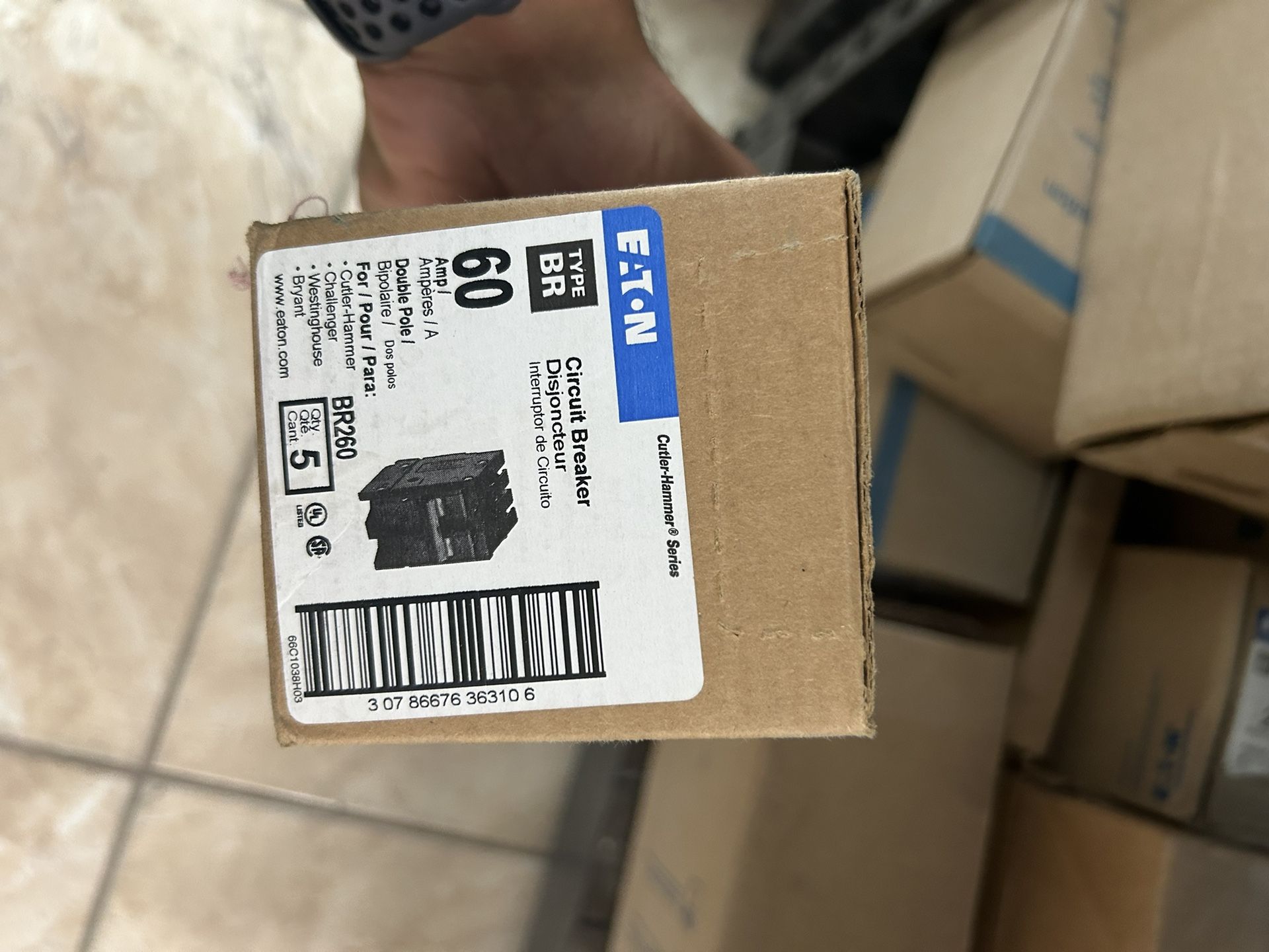Brand new EATON circuit breakers. They have never been used We mistakenly ordered too many for a project and have left over. $20 Each for 60 Amp double pole circuit breaker $20 Each for 40 Amp Single pole