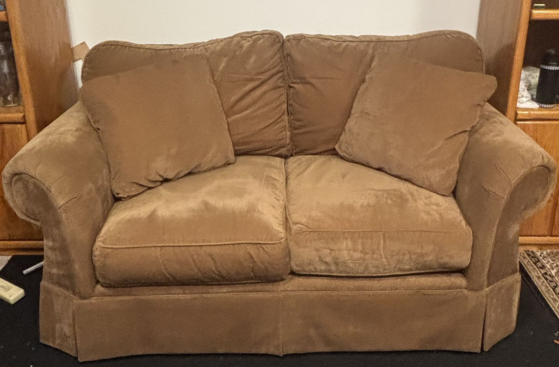 Pottery Barn Loveseat that is a brown orange color. In excellent condition, from a pet free smoke free home. Asking $300 or best offer.