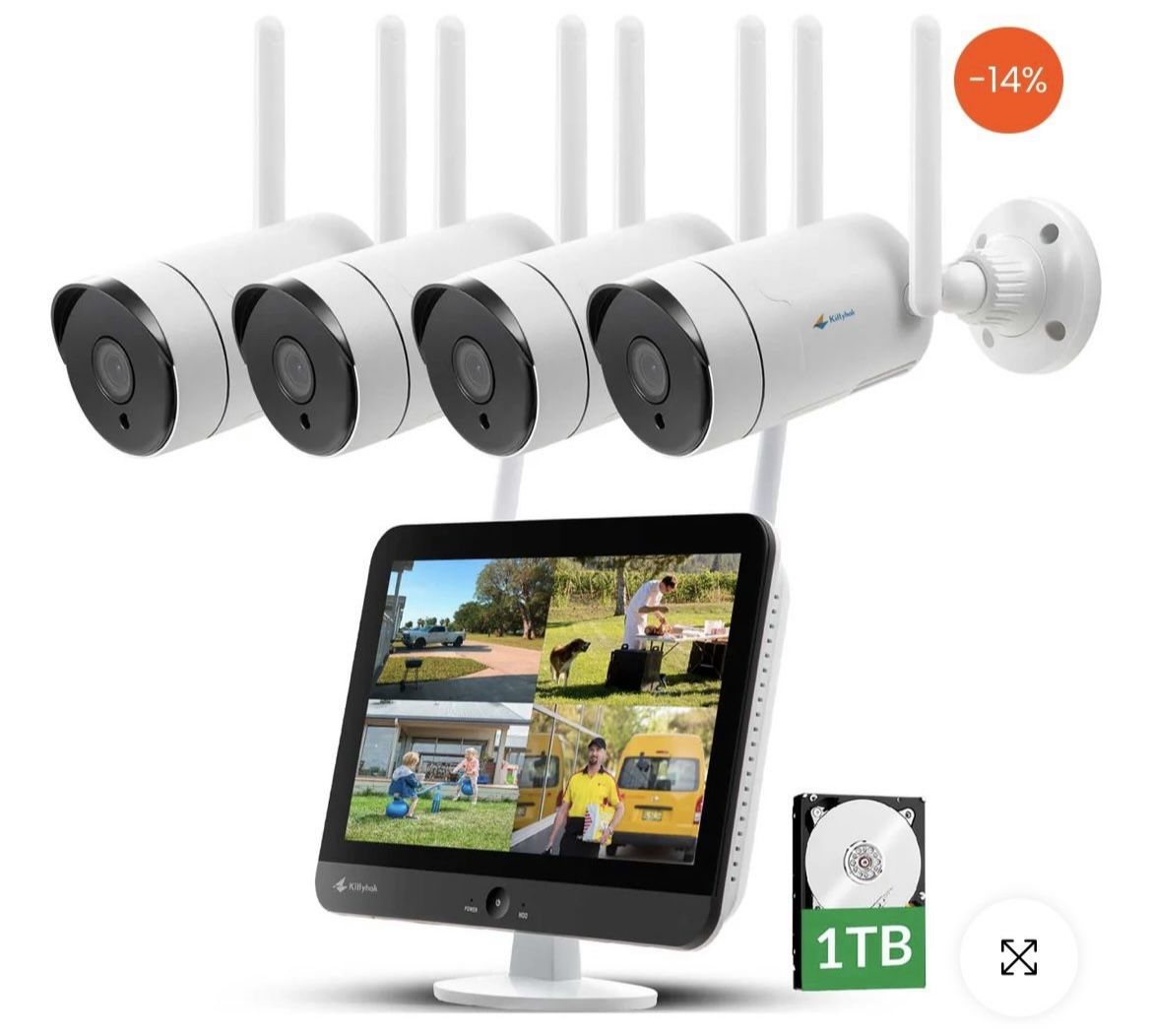 All In One 2K Wireless Security Camera System With 12" HD Monitor & 1TB HDD