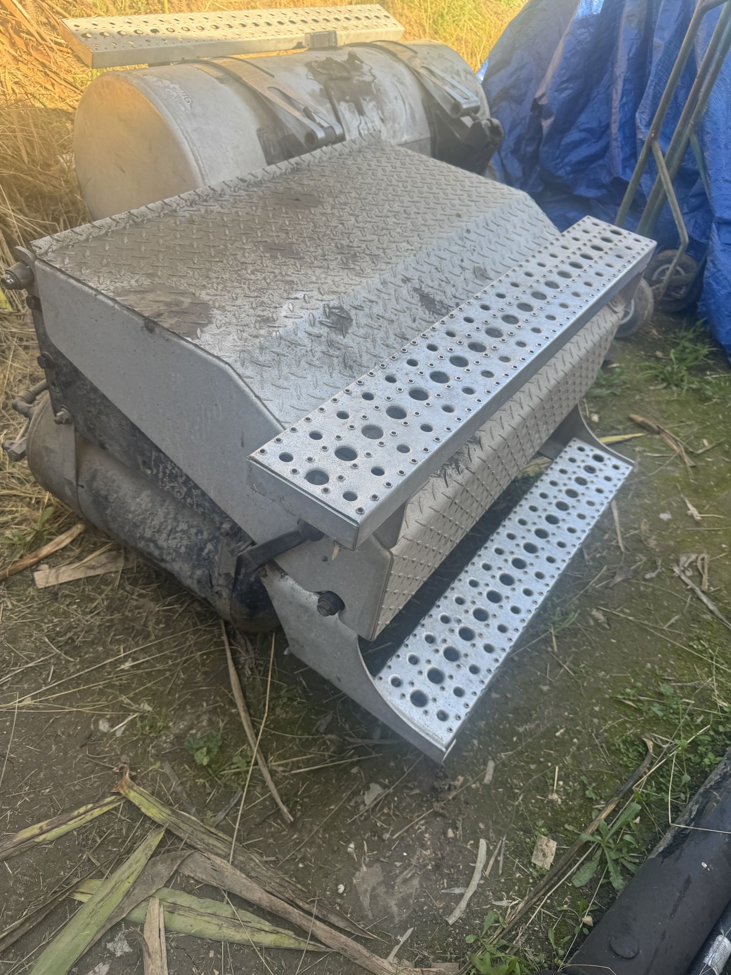 I have a semi truck big rig chrome battery box. Has room for 4 batteries. Also has the step. Came off Freightliner Cascadia but universal to all trucks. Includes the bracket to mount onto frame and three air tanks below.