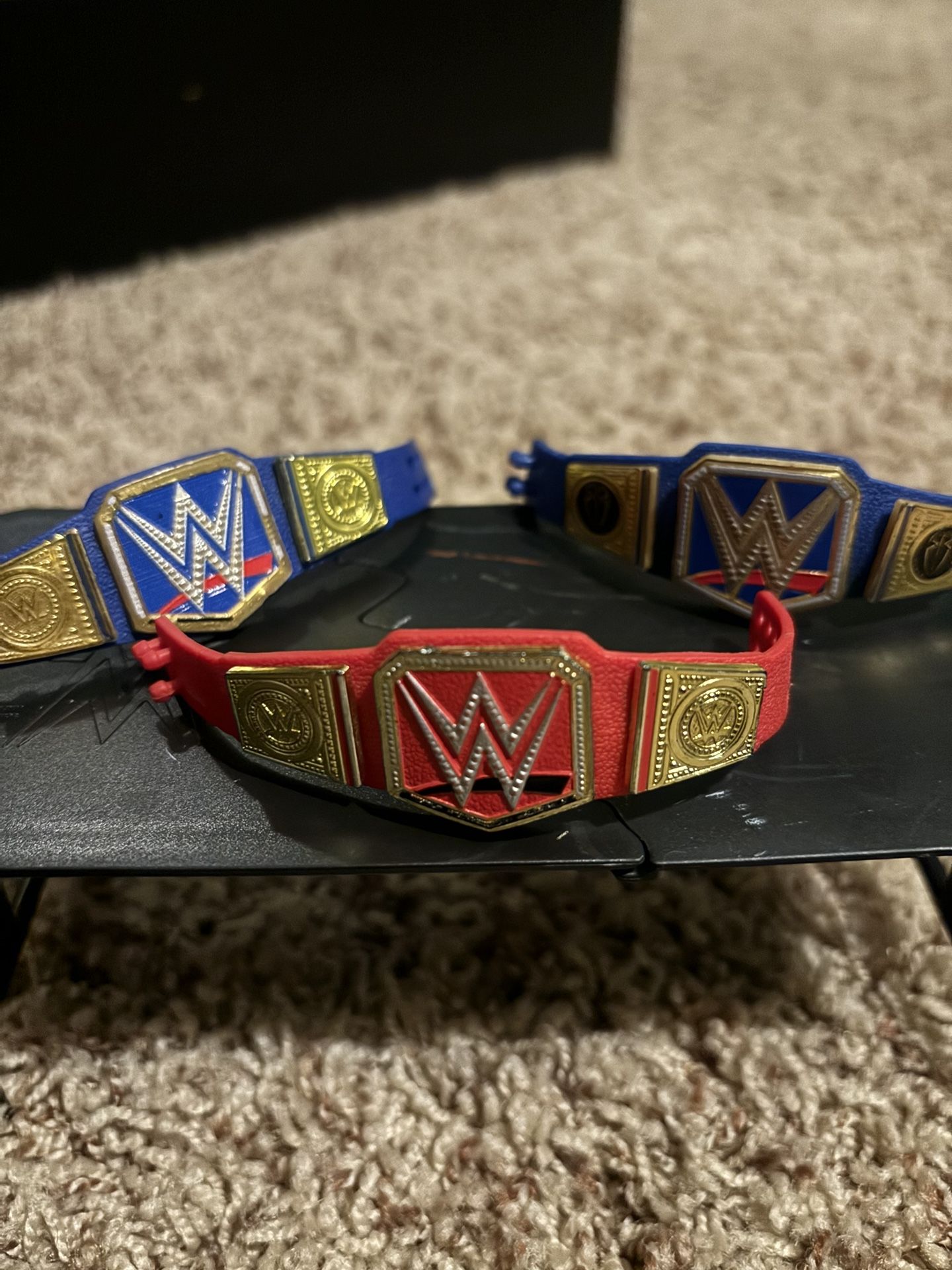 WWE Universal Title Belts Red and Blue ASK FOR LOT OF SEPARATE Each of Blue ones is $9, Red is $11, all together is $26 comes from a smoke free home