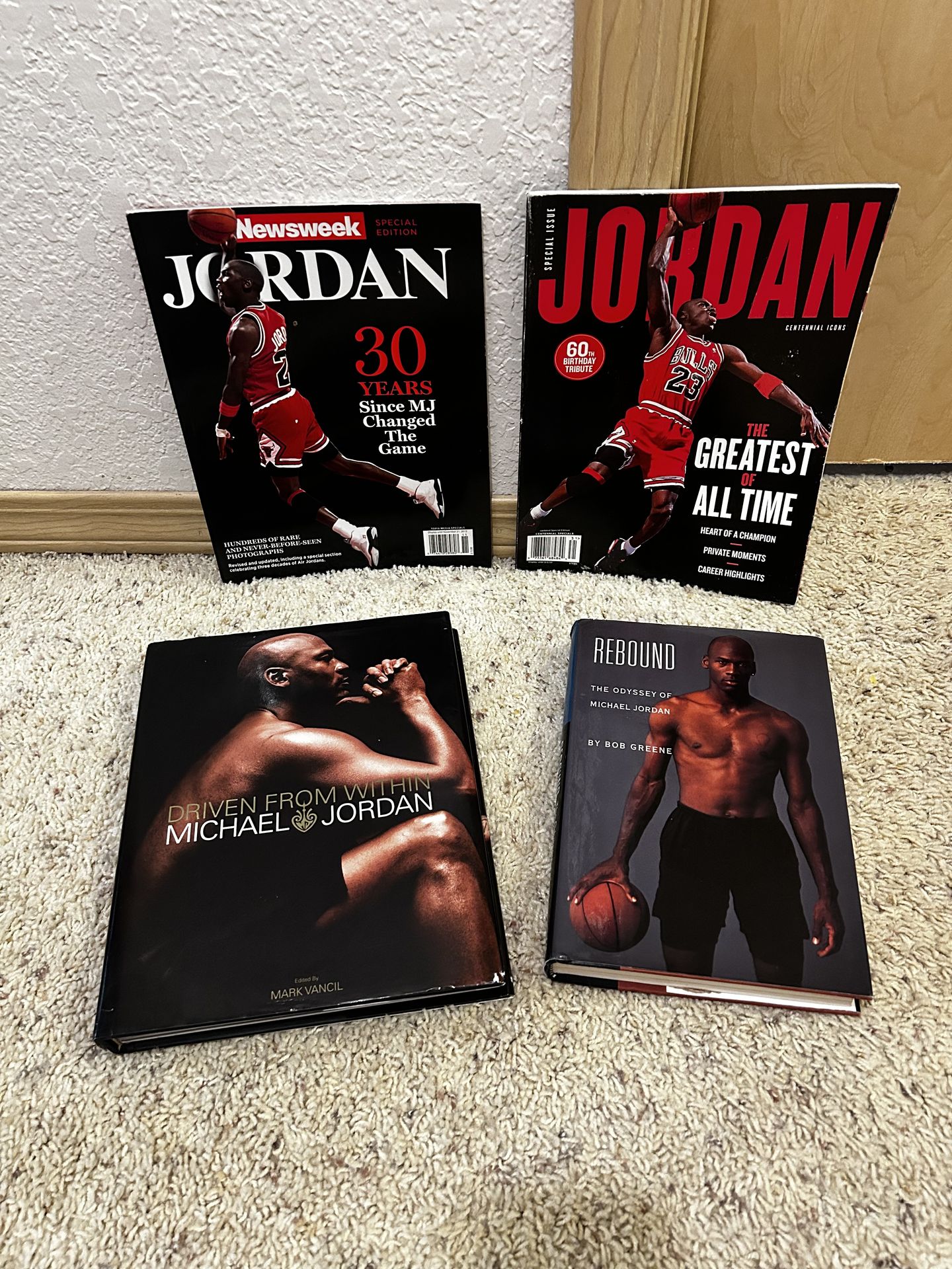 Selling a collection dedicated to basketball legend Michael Jordan. Includes:• Driven From Within by Mark Vancil• Rebound: The Odyssey of Michael Jordan by Bob Greene• Newsweek Special Edition – Jordan: 30 Years Since MJ Changed the Game• Jordan: The Greatest of All Time Special Issue All items are in good condition. Great for collectors, sports fans, or anyone who admires Michael Jordan and the Chicago Bulls legacy.