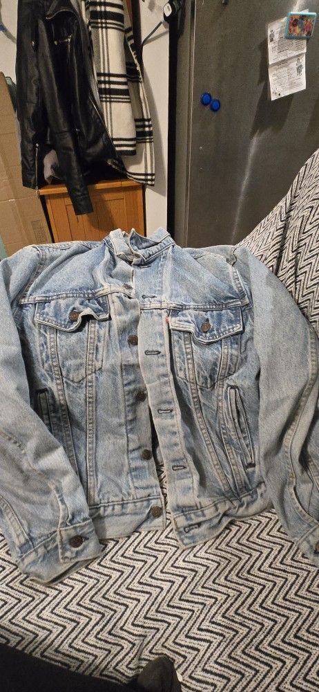 Genuine Blue Denim Levi Strauss Button Up Jacket, size medium unisex