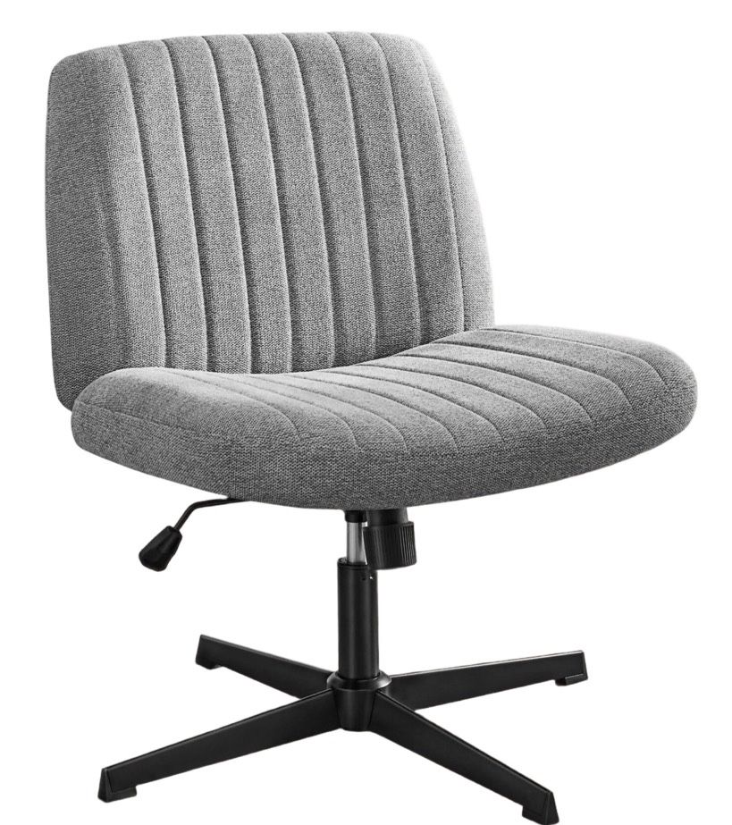 The revolving office chair is designed for comfort and efficiency, featuring a padded seat, adjustable height, and 360-degree swivel. Its ergonomic design supports posture correction, reducing back strain. With a sturdy base and smooth casters, it ensures easy movement and stability, enhancing productivity in the workspace. • Larger Seat Width - If you like to sit cross-legged on the office chair, if you are looking for a wide desk chair, this office chair with a width of 26 inches is exactly designed for you. • Comfortable Cushion - High density sponge-filled cushion and backrest will give you the feeling of sitting on a sofa, which is very comfortable and not easily deformed. This office chair without wheels has an ergonomic structure designed for sedentary people; even if you need to work in the chair for up to 10 hours, you do not feel tired and have muscle pain. • Sturdy Structure - The cross-structured metal base is very sturdy and can support up to 300 pounds. This desk chair without wheels also has a non-slip bottom design, which can protect your floor in all aspects. • Height Adjustable - With an adjustable seat height ranging from 15.94 inches to 19.69 inches, this cross legged office chair allows you to comfortably place your feet on the floor while sitting, and it fits on most desks, dressers and coffee tables. • Swivel & Rocking - The seat of this office chair can rotate 360 degrees, making the workspace more convenient. Armless design can create more space for you; pushing the bottom of the table when not in use can also save space. Rotating the knob under the cushion and pulling the lever to open the seat's rocker mode Assembled chair