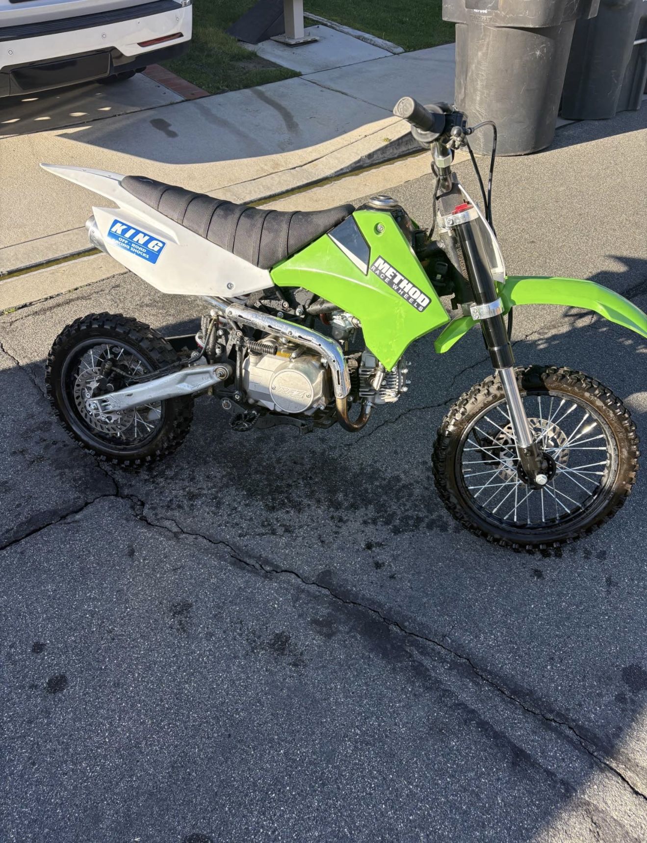 Apollo X4 110 dirtbike. This bike is awesome. Starts first kick, upgraded handlebars, forks, rear, shock, and carburetor. Bike runs great and is in good condition.